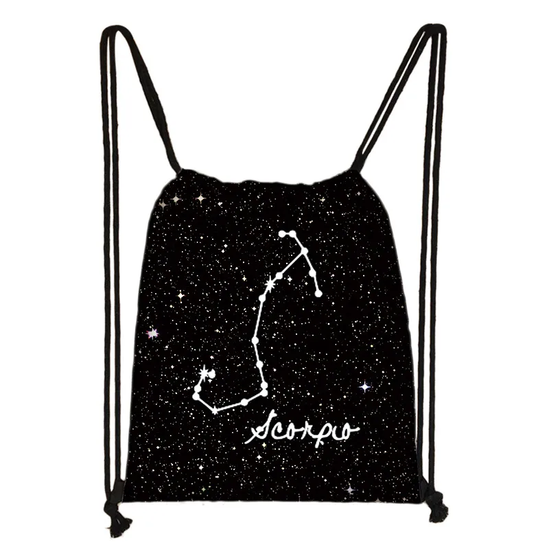Рюкзак с 12 созвездиями зодиака для девочек-подростков, женская сумка на шнурках, Женская дорожная сумка для хранения