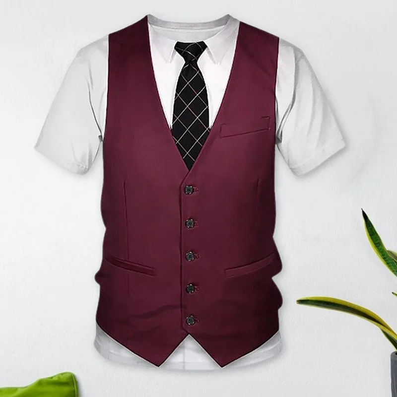 Новинка 2021, футболка с имитацией одежды, футболка для мужчин и мальчиков с 3d Цифровым принтом, летняя модная футболка с коротким рукавом, топ для мужчин, топ с коротким рукавом