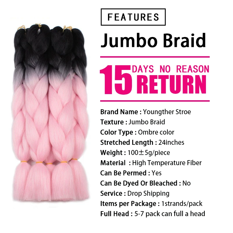 Youngther 24 дюйма Омбре плетеные удлинители волос вязанные крючком...