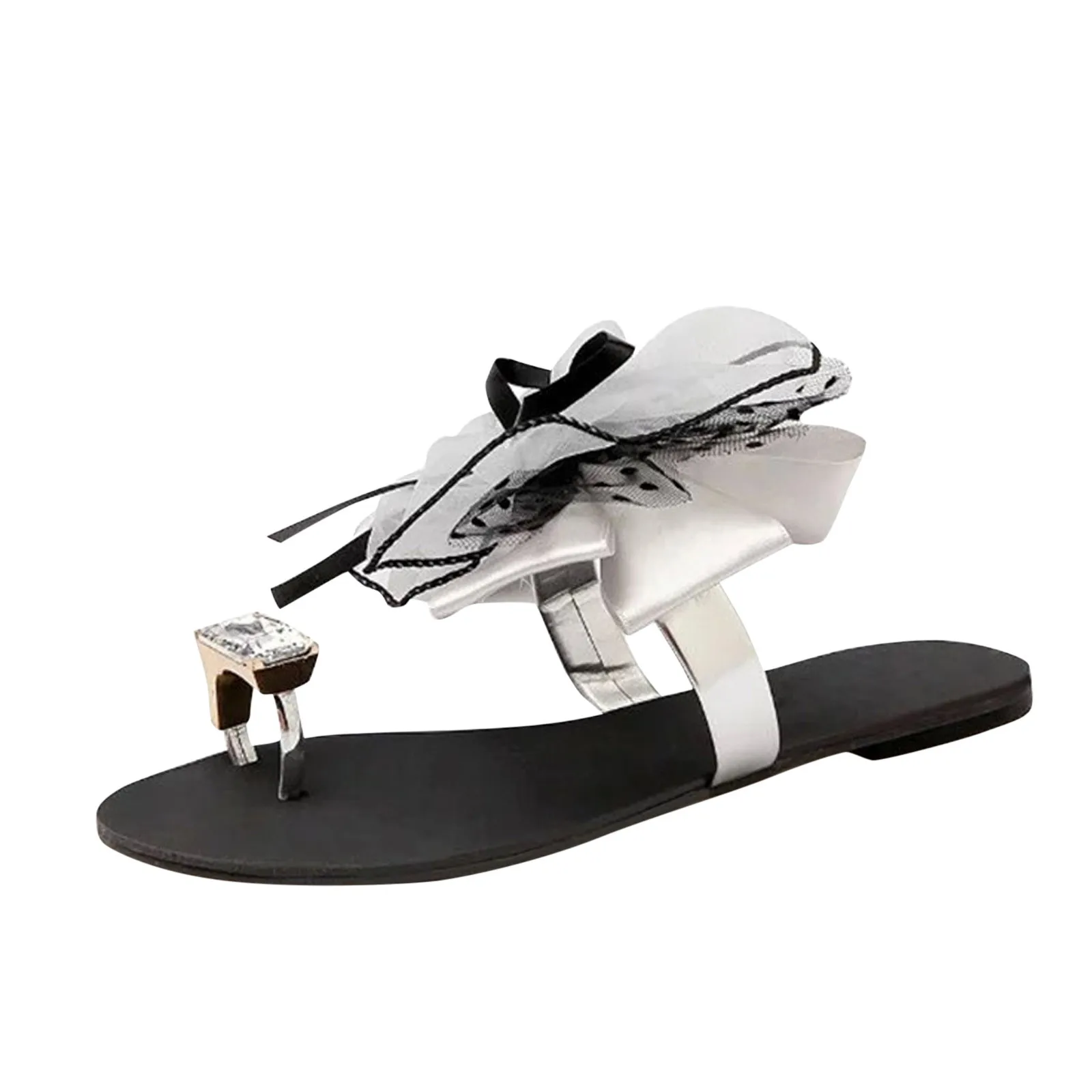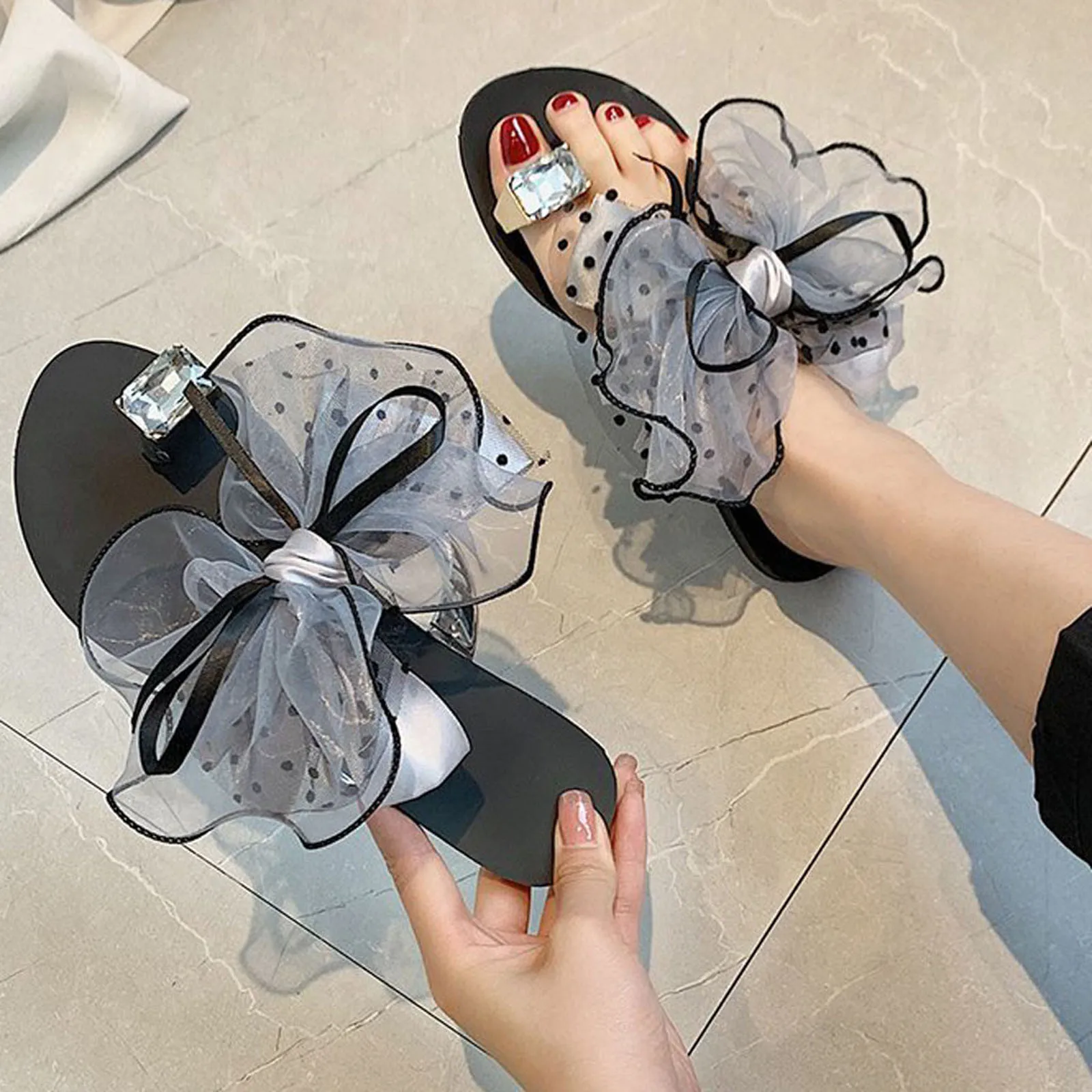 Шлепанцы, с кружевным бантом, большой размер 2021, пляжная обувь, женская обувь сандалии, лето женские сандалии со стразами