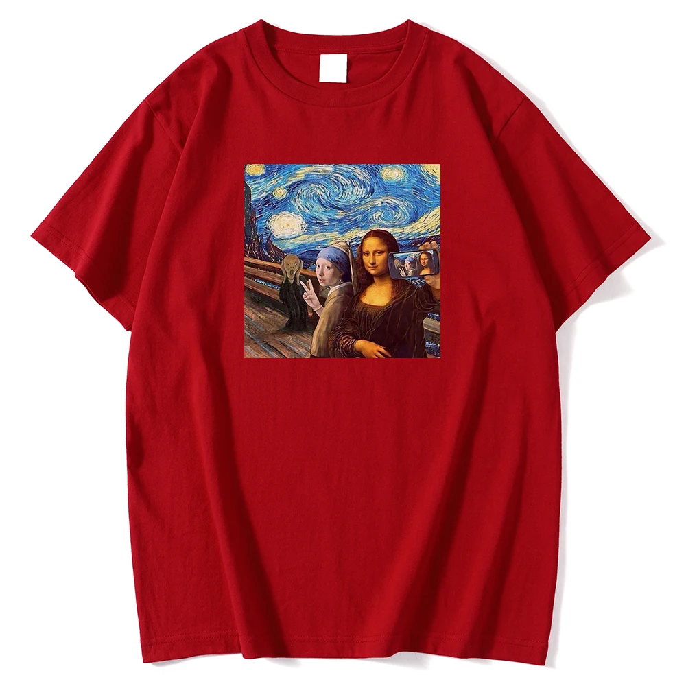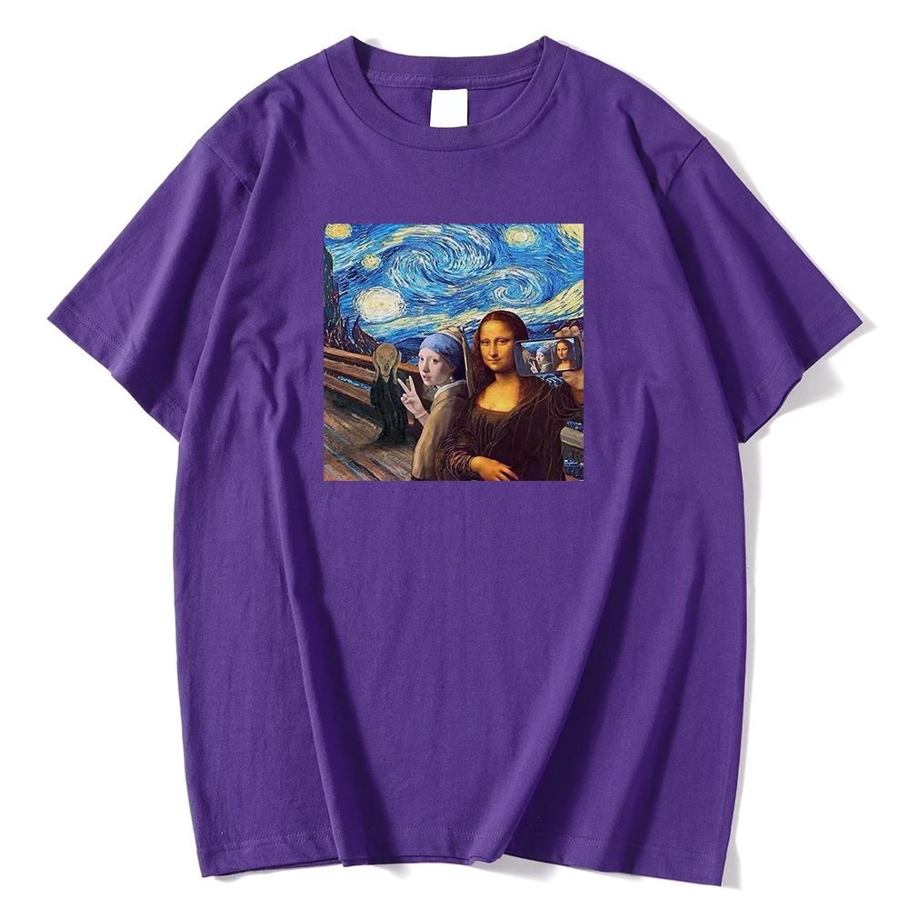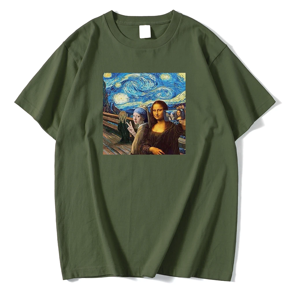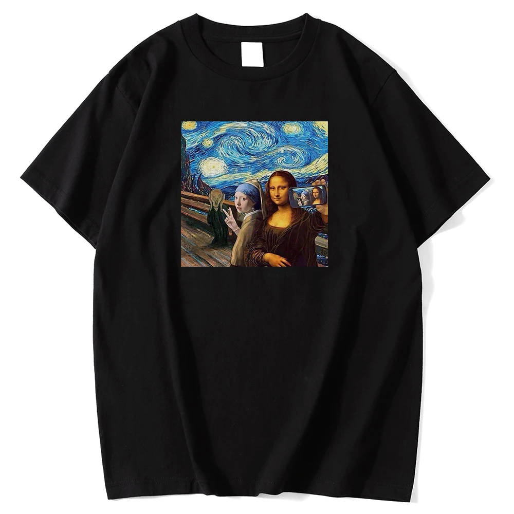 Футболка мужская весенне-летняя, с принтом Винсента Моны Лизы, свободная, с короткими рукавами, большого размера, S-XXXL