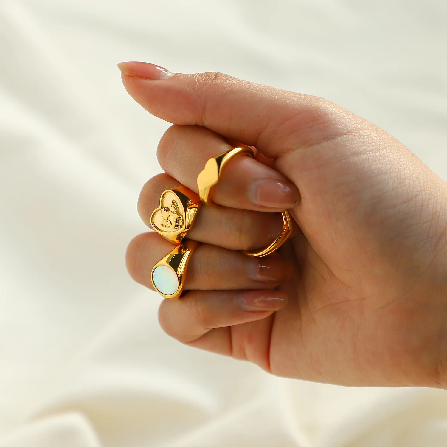 18K позолоченные 316L нержавеющая сталь в форме сердца Ангел кольца для женщин Ретро массивное кольцо ювелирные изделия аксессуары