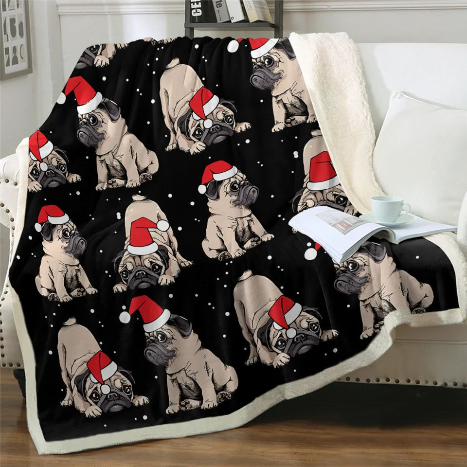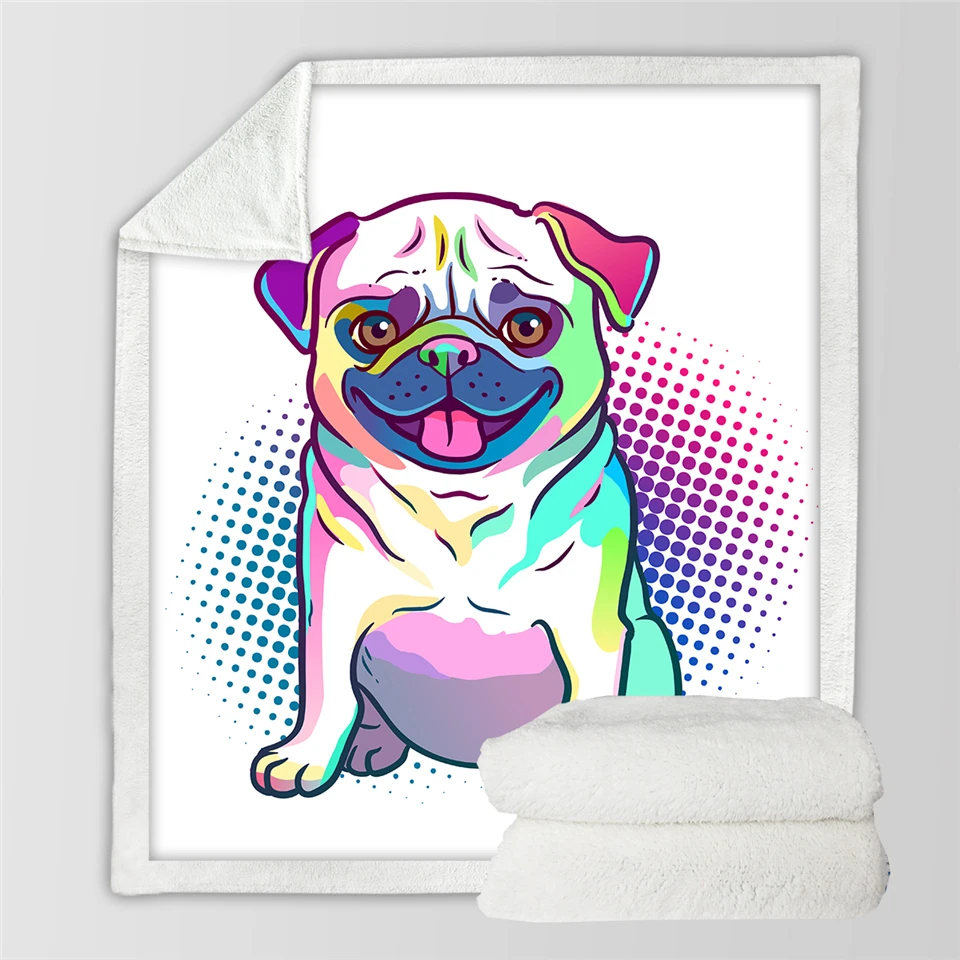 Новинка, плюшевое одеяло хиппи, мопс, шерпа на кровать, животное из мультфильма, собака, покрывало, модное одеяло