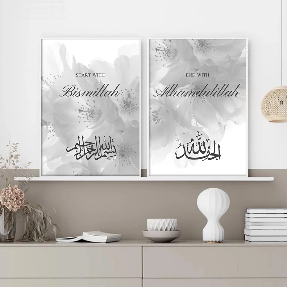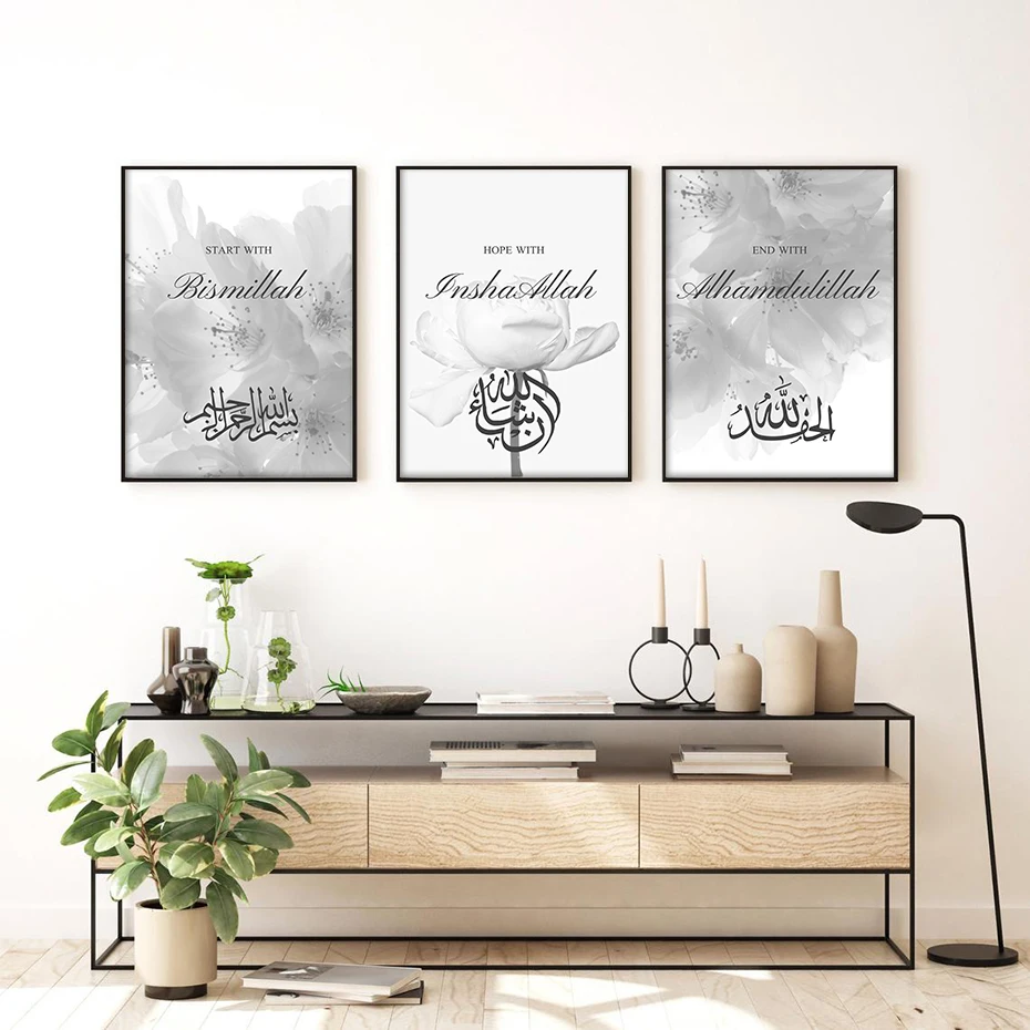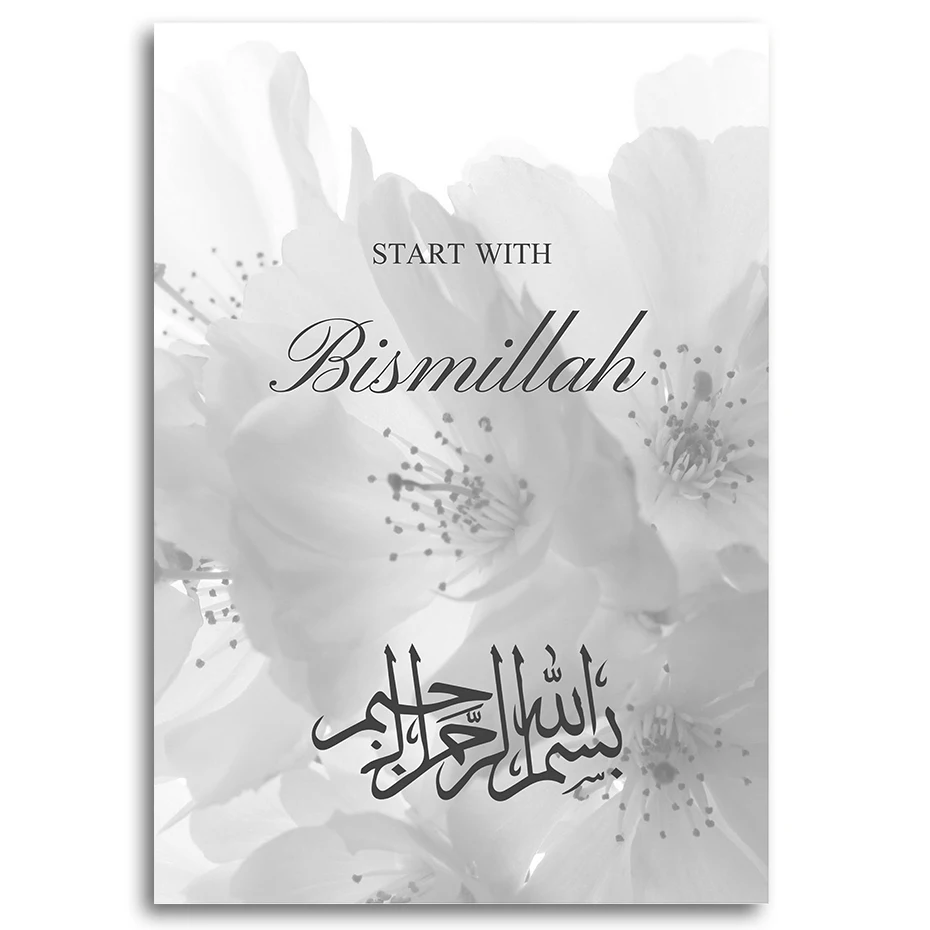 Черно-белая надпись старт от Bismillah, мусульманская настенная Кар...