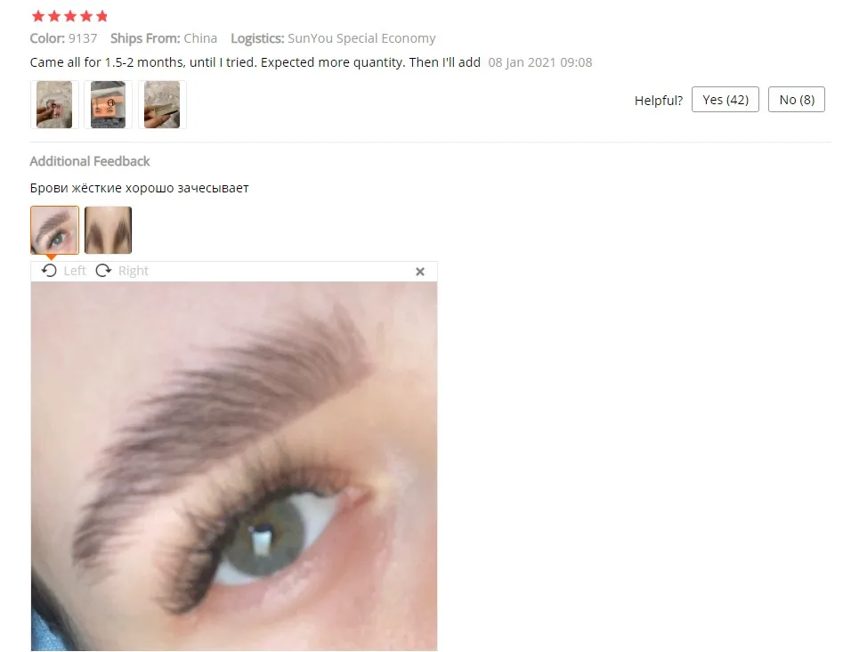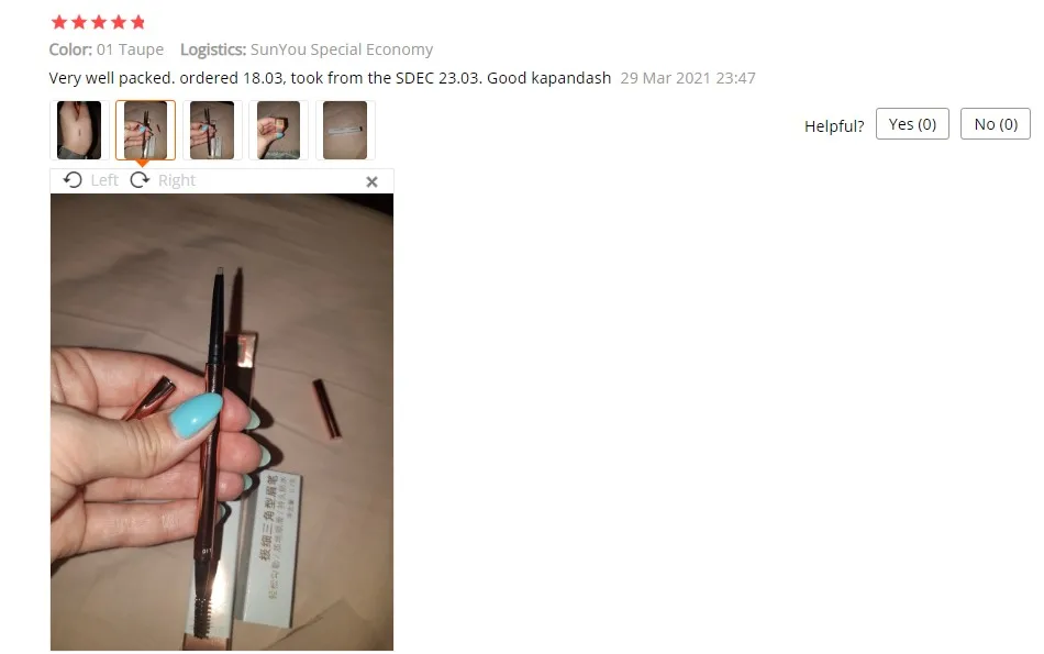 Товар соответствует описанию. Доставка также была быстрой. До сих пор карандаш для бровей и кисть хорошо работают, они действительно тонкие :) мыло для бровей было немного жестким на моей коже, поэтому я стараюсь использовать только крошечную часть при нанесении. Спасибо :)