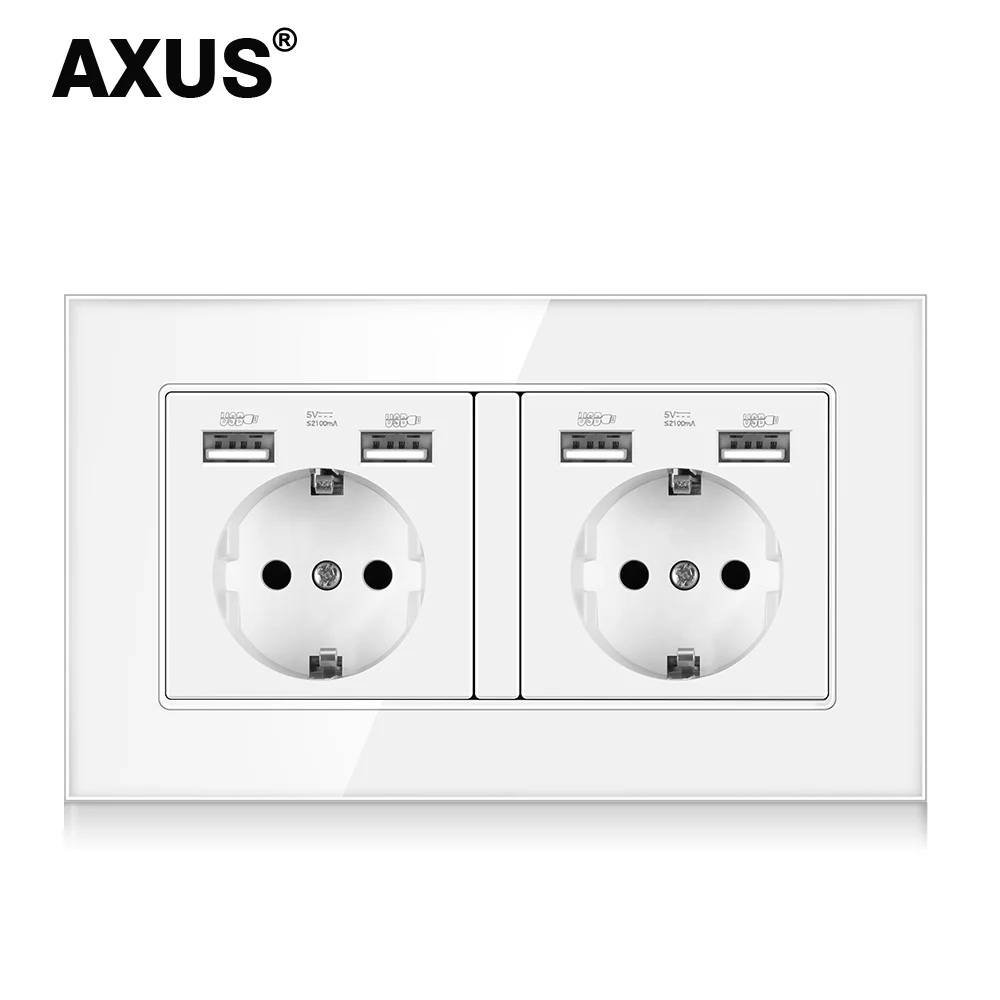 Настенная розетка со стеклянной панелью, 16 А, европейская стандартная розетка с двумя USB-портами для зарядки, двойная розетка, розетка 146 мм * 86 мм, светодиодный индикатор