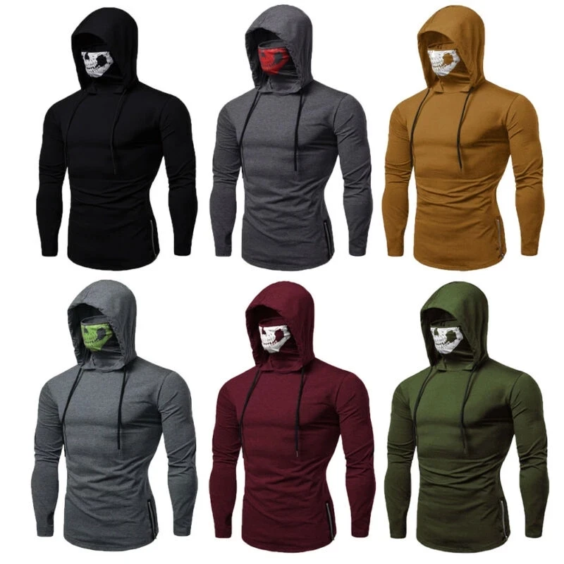 Толстовка мужская Тонкая с капюшоном, худи с длинным рукавом и маской