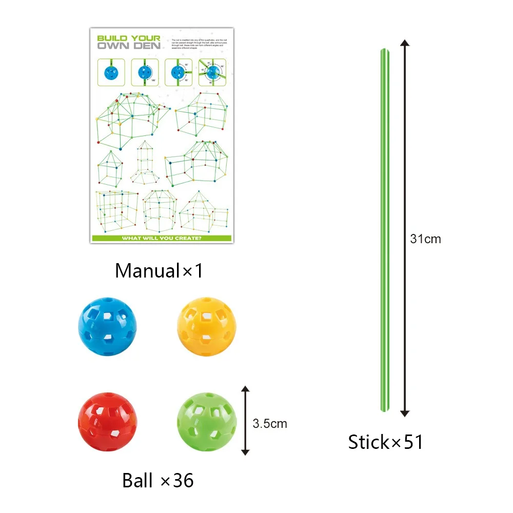 SetG:1 палатка + 1 Руководство пользователя + 51 палочки + 36 шариков, большой размерный ряд: 34*24*4,5 см