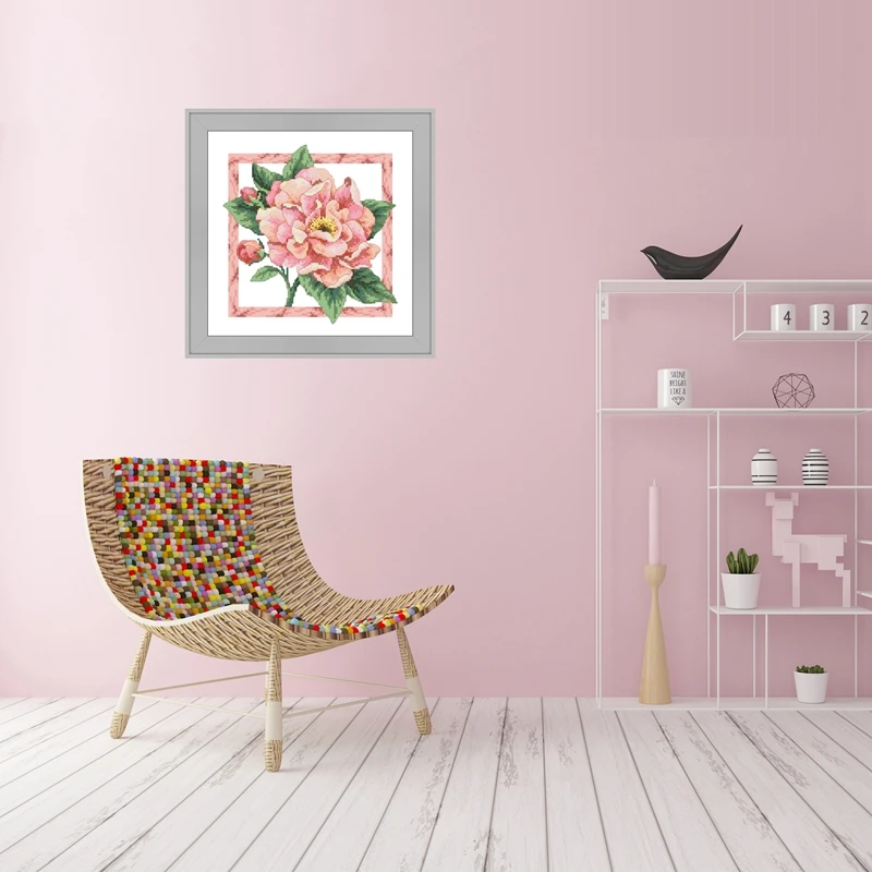 Набор для вышивки крестиком с цветами пиона 18 карат 14 карат 11 карат холст без рисунка хлопчатобумажная нить подсчитываемая Вышивка Набор для вышивки
