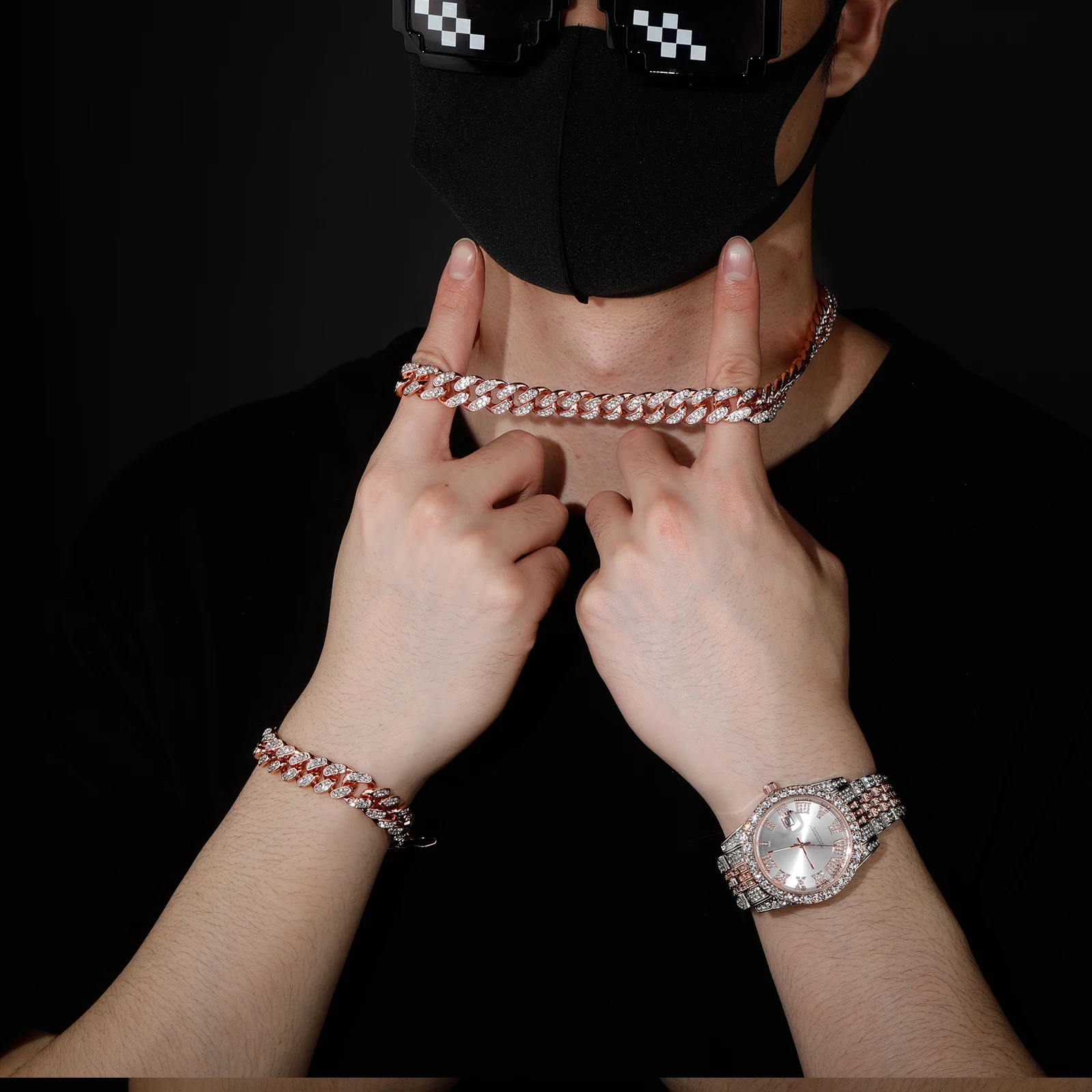Страна: MX Metal color: Rose Gold Ships From: China Main Stone Color: Silver cuban set Length: 20inch and 8 inch Доставка: Standard Shipping 30.06.2021