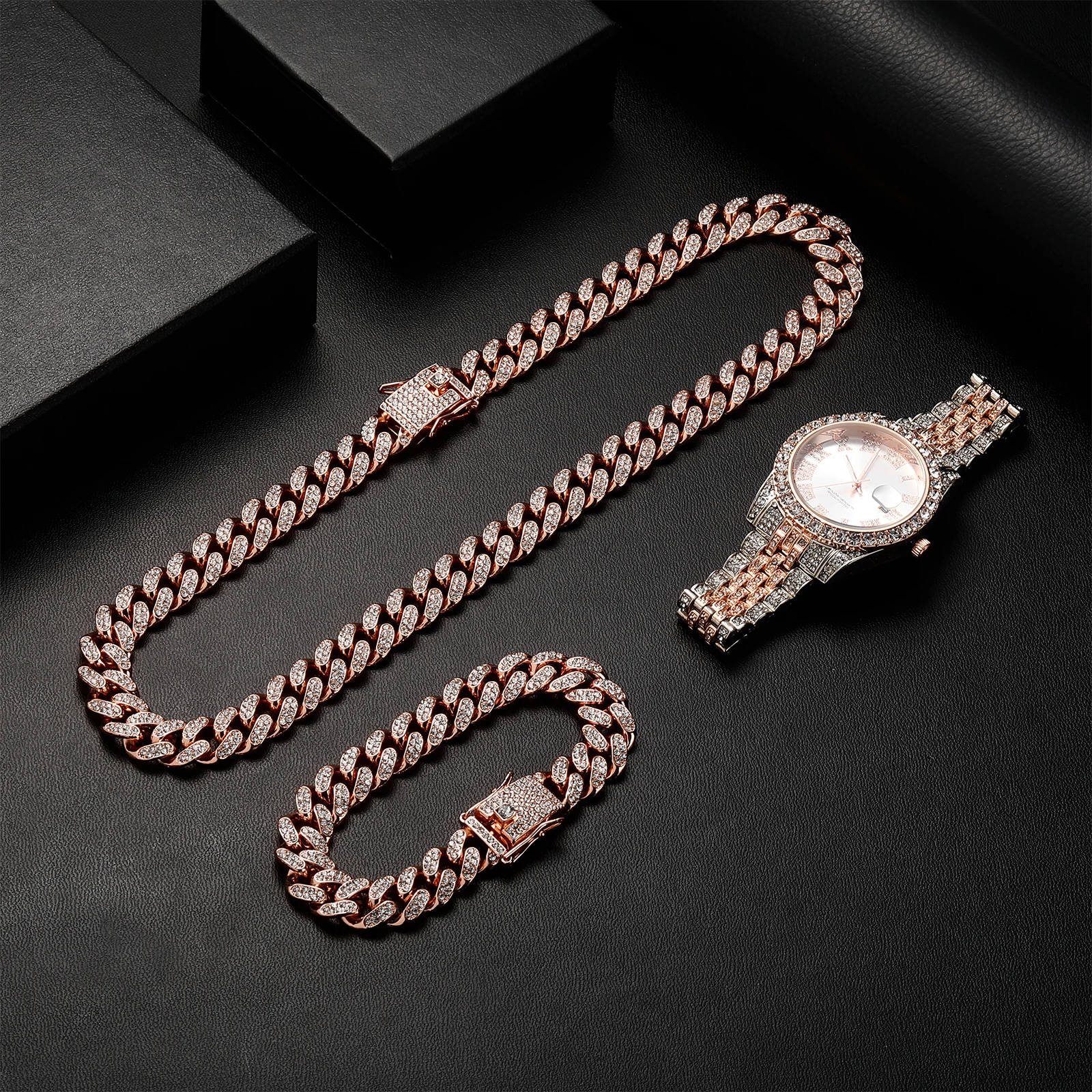 Цепочка Женская, 14 мм, ожерелье + часы + браслет из нержавеющей стали