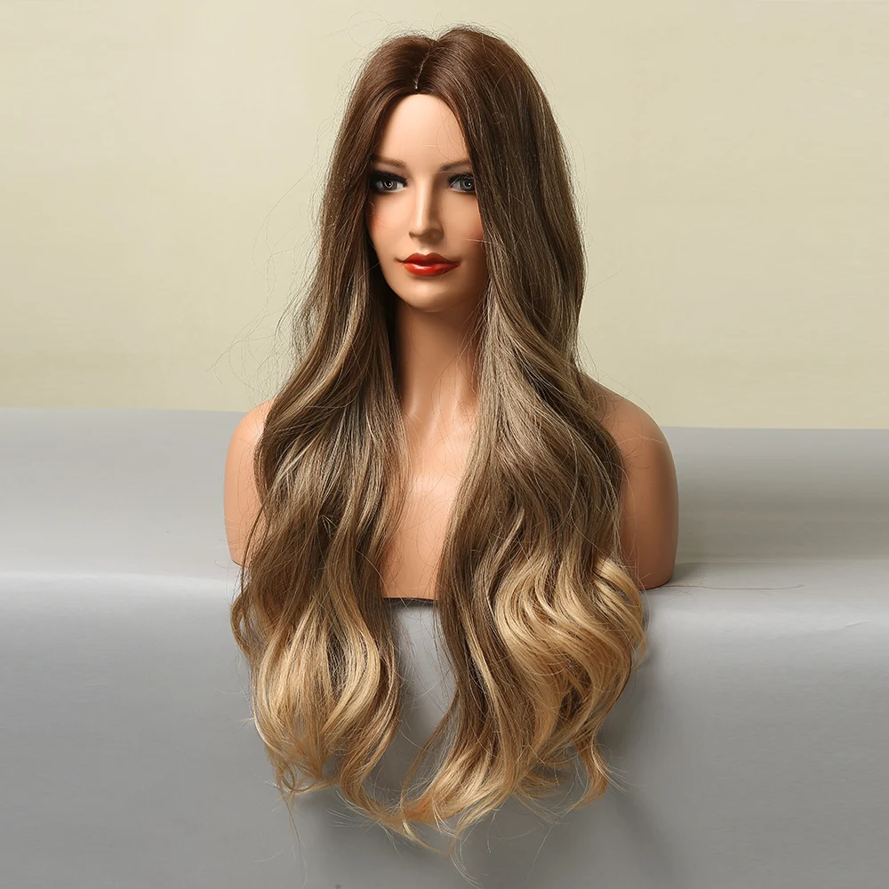 Парик женский из искусственных волнистых волос, коричневого цвета, с эффектом деграде, для косплея, термостойкий, парики на каждый день