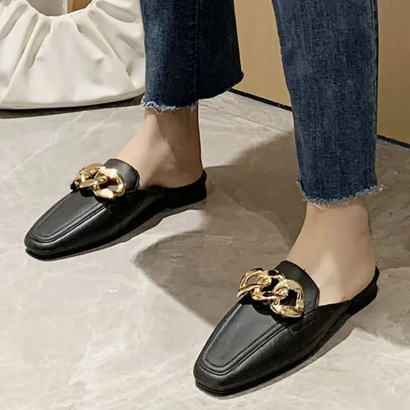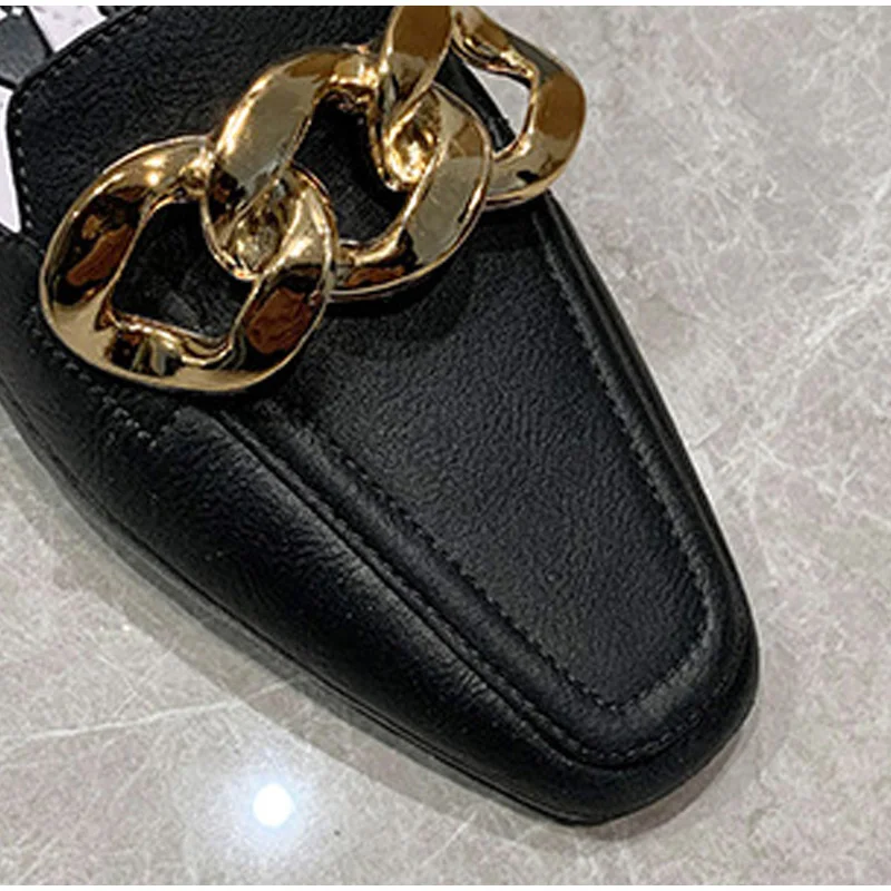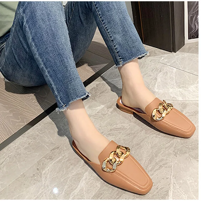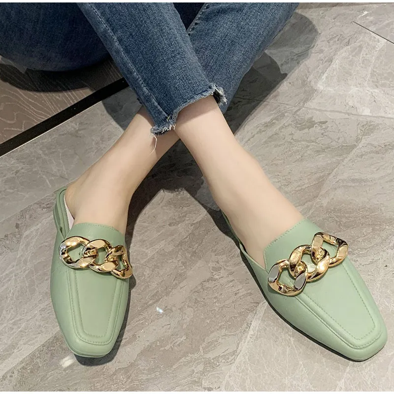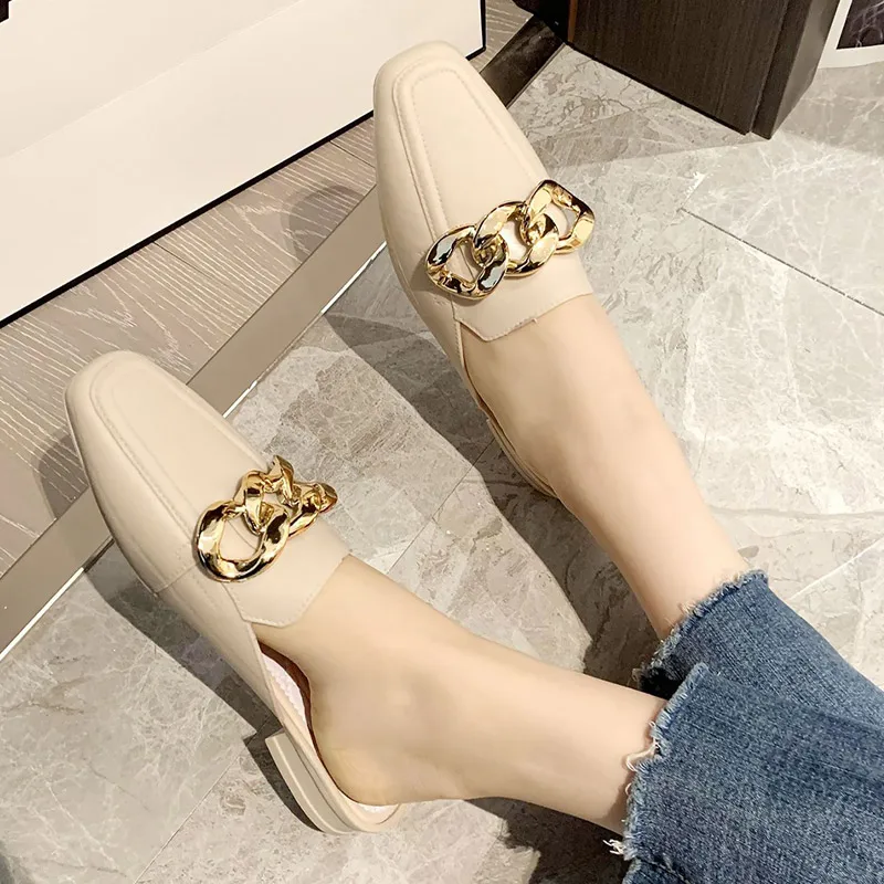 Женские тапочки; Обувь на плоской подошве с цепочкой; Однотонная Нескользящая Женская обувь в сдержанном стиле; Модная Элегантная удобная женская обувь; Коллекция 2021 года; Сезон лето
