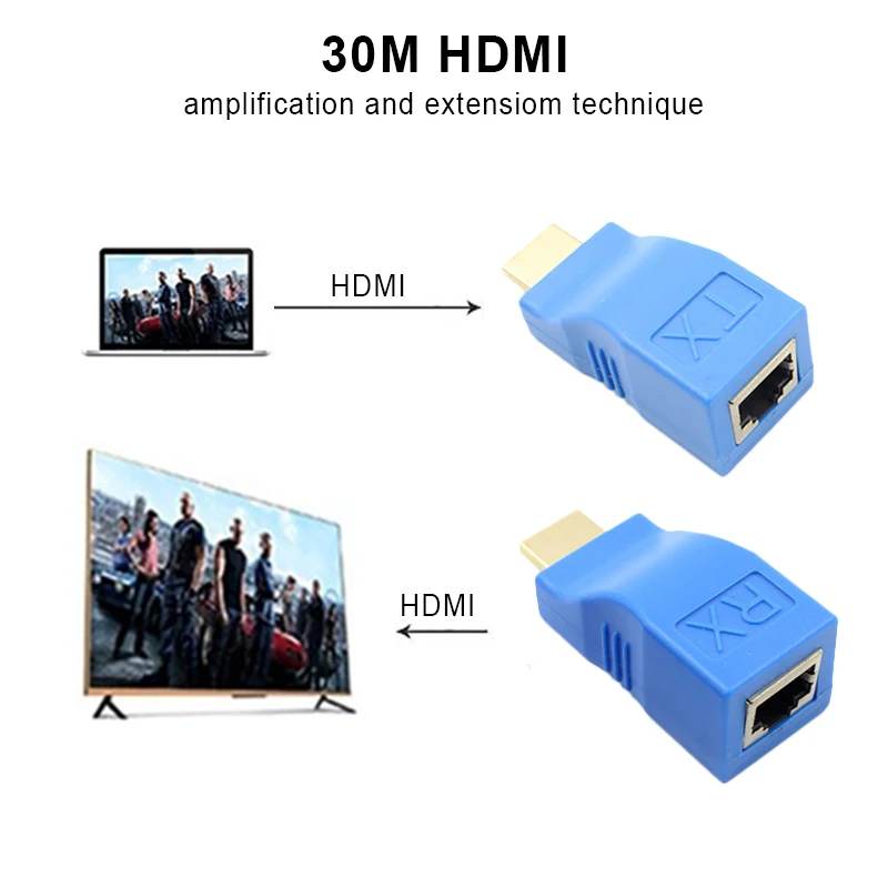 Удлинитель HDMI REDAMIGO, 30 м, HD 1080P, 1x1, разветвитель HDMI, отправитель и приемник, кабель HDMI с кабелем Cat6 RJ45 для проектора, HDTV