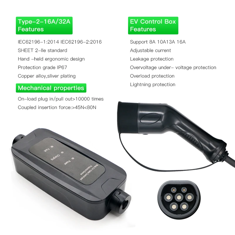 Портативное зарядное устройство для электромобилей типа 2 IEC62196 ...