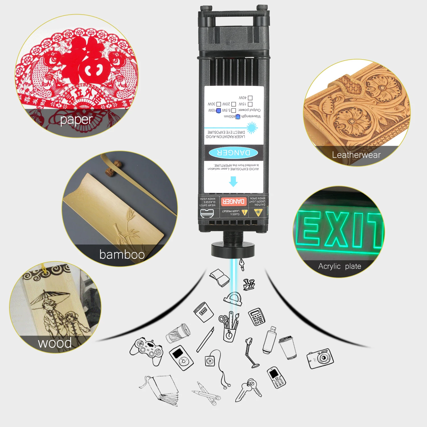 Комплект лазерного модуля 40 Вт 450 нм, синий лазерный модуль TTL, лазерная головка, режущий модуль для лазерного фрезерного станка с ЧПУ Engaver