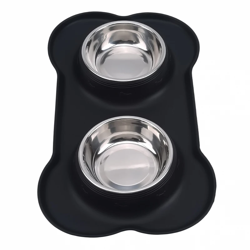 Нескользящие двойной собачья миска с Силиконовый коврик прочный Нержавеющаясталь с шнековой крышкой для кормления животных чаша питьевой кормушка для воды и корма