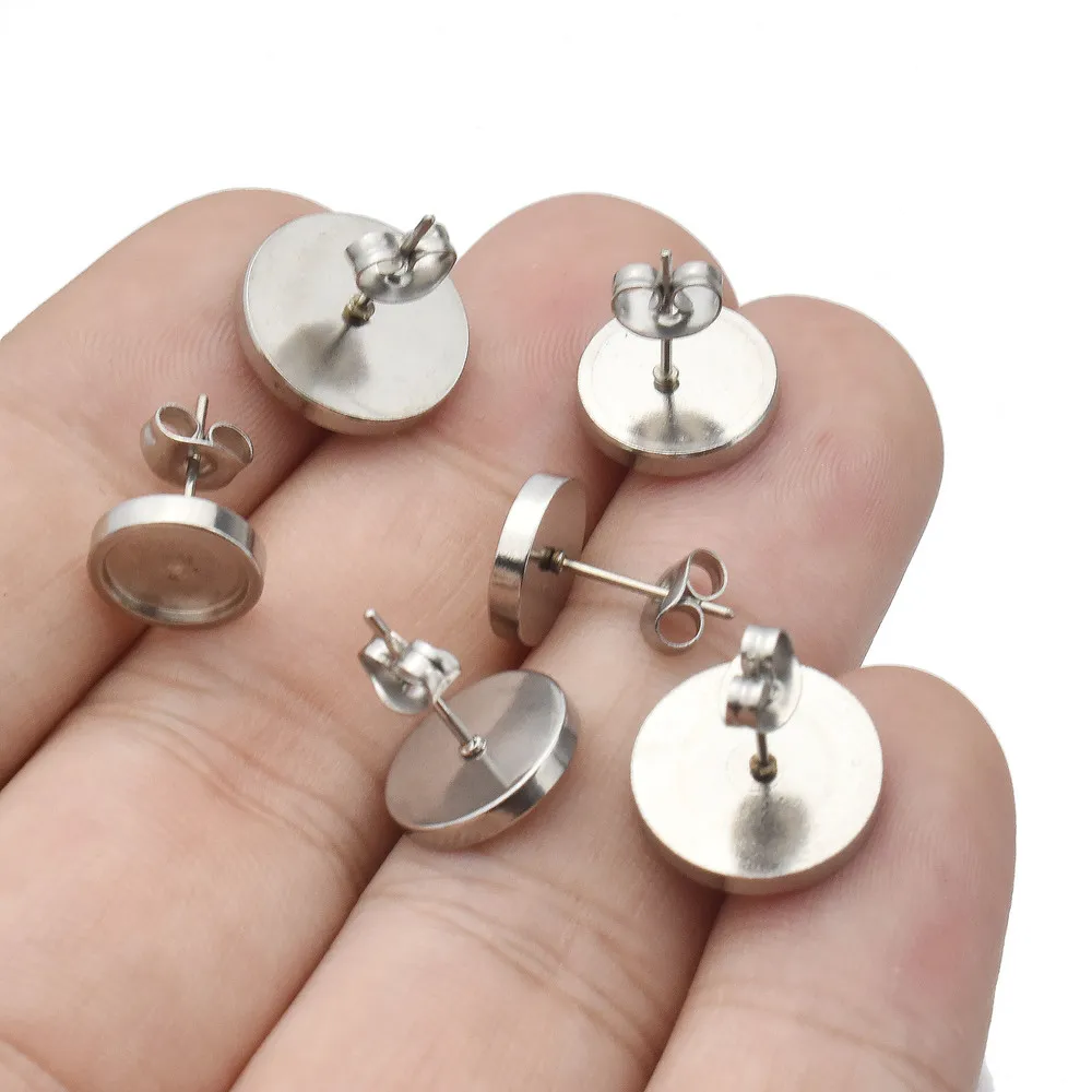 20 штук в партии, на возраст 6, 8, 10, 12 лет мм Серьги с плоским основанием установка Нержавеющаясталь серьга с пустым основанием Кабошон-Камея База "сделай сам" для изготовления ювелирных изделий, оптовая продажа