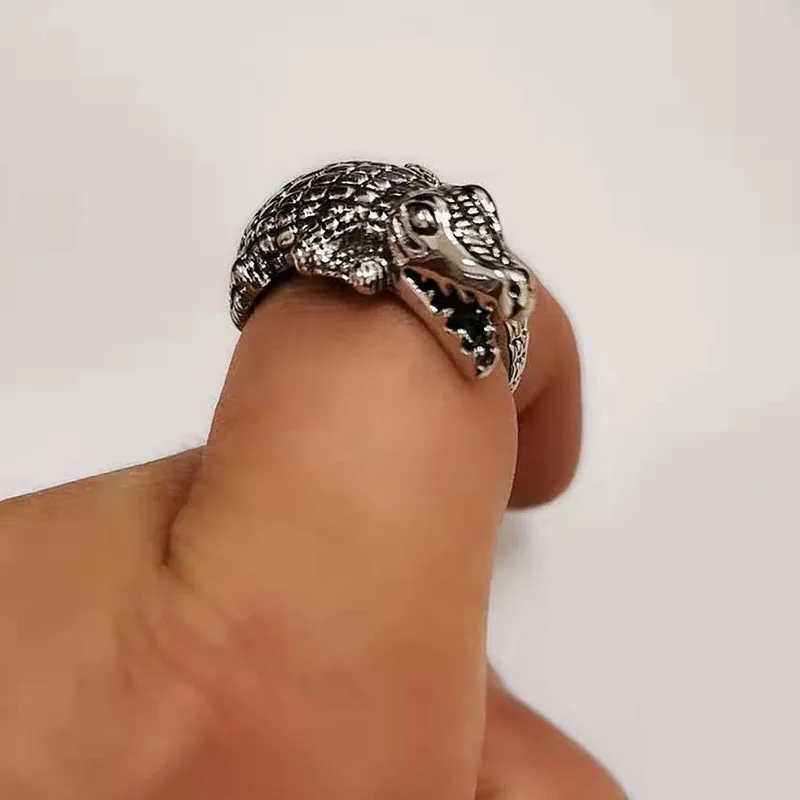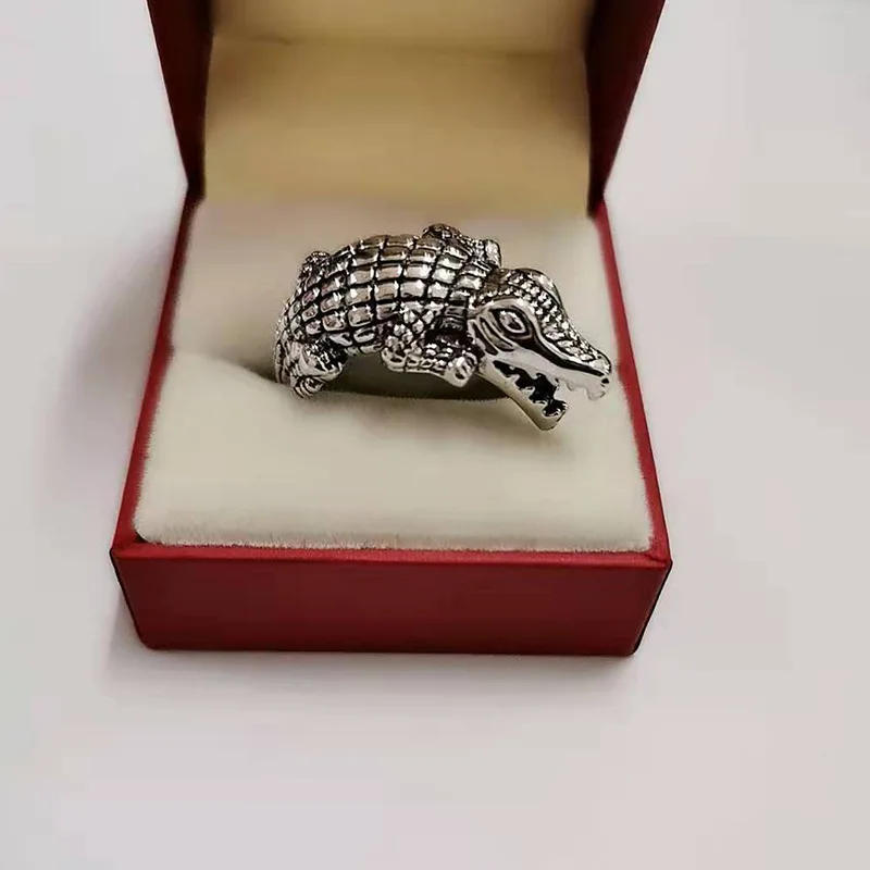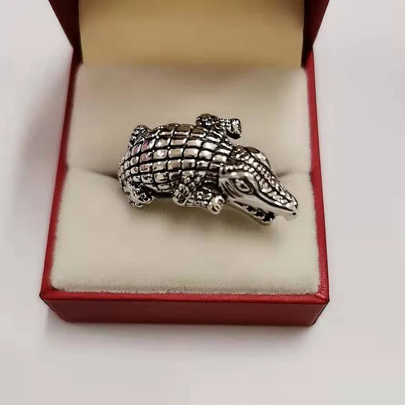 Творчески ювелирных изделий Винтаж изготовлен из серебра Цвет мужской крокодил кольцо с животным для мужчин вечерние ювелирные изделия аксессуары