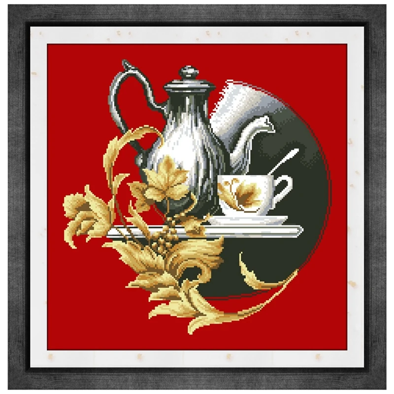 Чайный Набор для вышивки крестиком, Набор для вышивки красным холстом из хлопчатобумажных ниток 18 карат 14 карат 11 карат