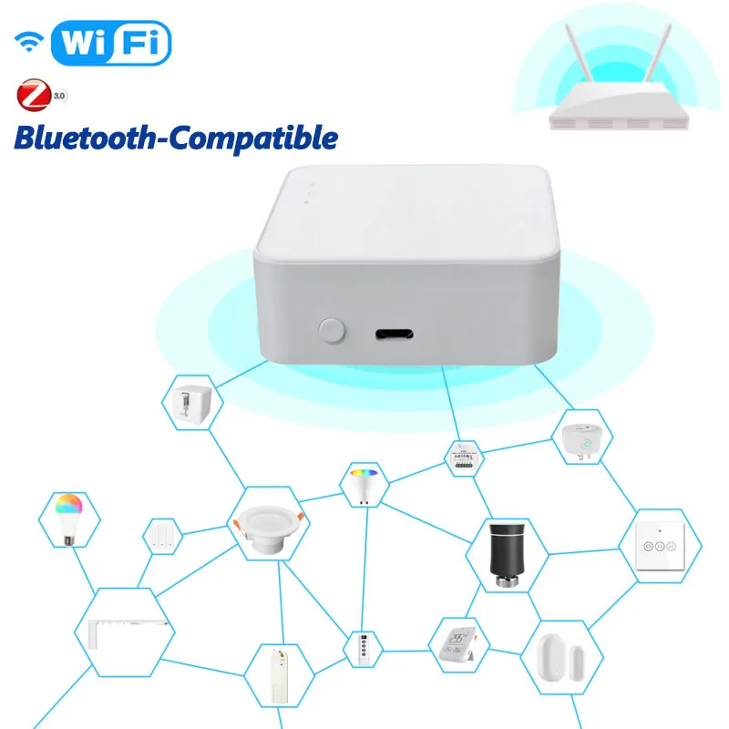 Шлюз Tuya многорежимный с поддержкой Wi-Fi и Zigbee, хаб для связи с поддержкой Bluetooth, дистанционное управление через приложение Alexa Tuyasmart Life