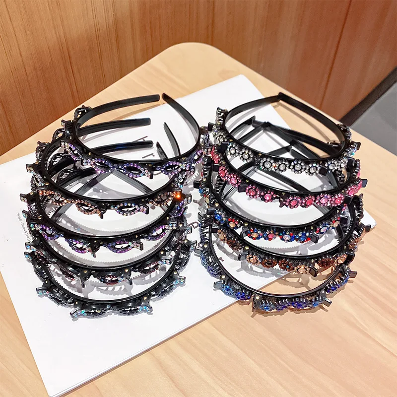 Женский ободок для волос Ruoshui с кристаллами, двойной ободок с клипсами, ободок для волос с жемчугом, женский головной Убор