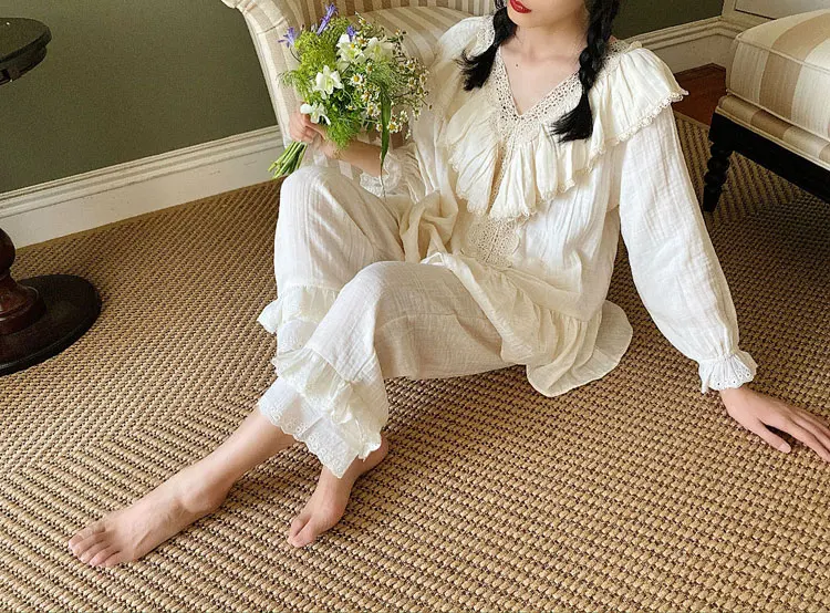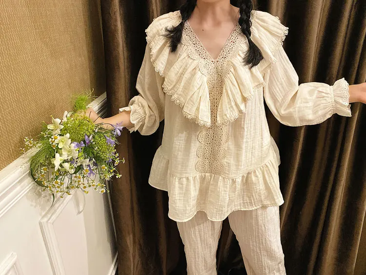 Женский пижамный комплект, топ с V-образным вырезом и штаны, винтажная домашняя пижама для девочек, стильная пижамы