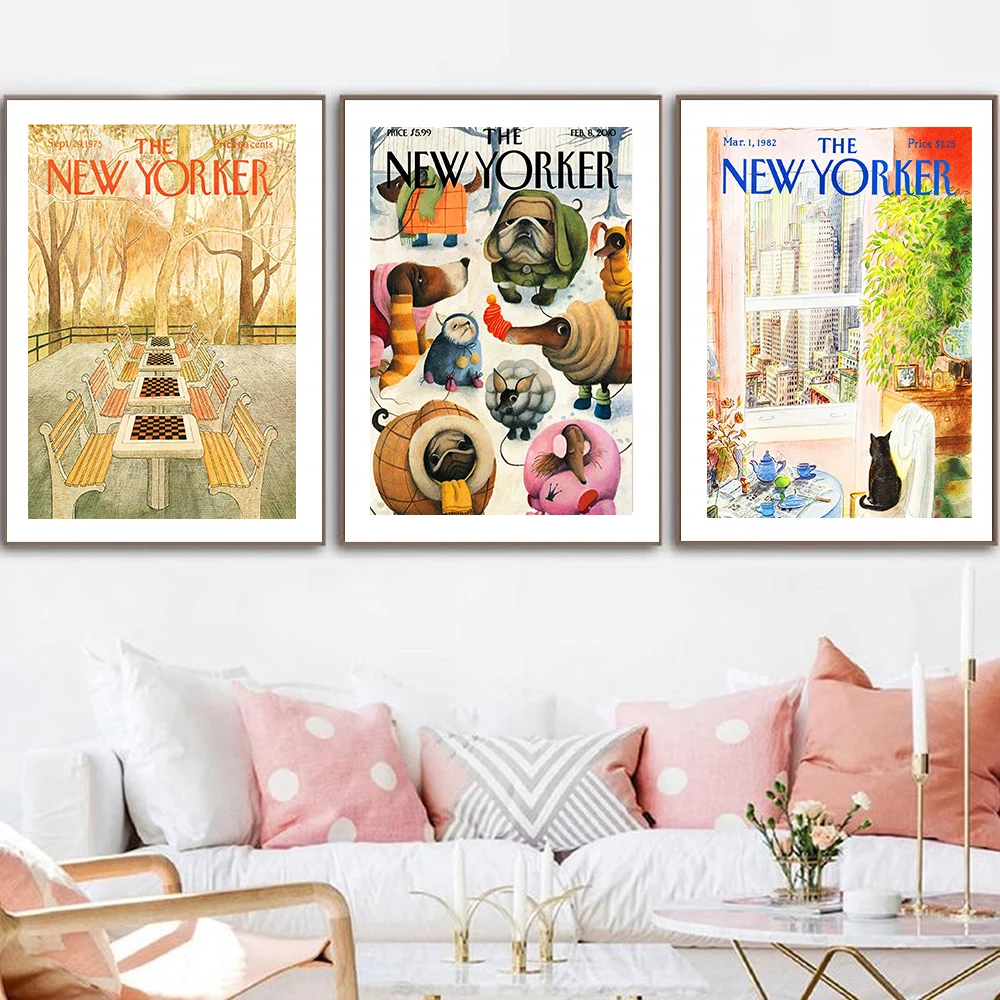Постер с изображением собаки Нью-Йоркера, обложка журнала, иллюстрация, винтажная Настенная картина, Картина на холсте с изображением животных для гостиной, домашний декор