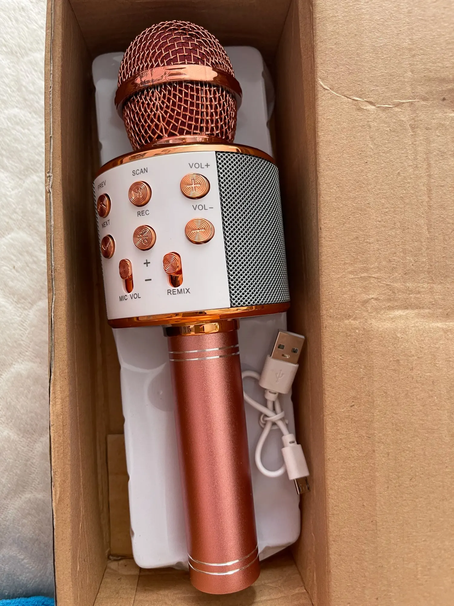 Быстро, упаковано аккуратно в коробку. Микрофон легкий. При включении очень громко орет баба. Динамик скрипит и трещит. Через неделю кнопки уже не слушаются. Вообщем очередной мусор. Пришла к выводу, не буду покупать на Али всё что связано со звуком. Спор открывать не буду, продавец его не изготавливал.