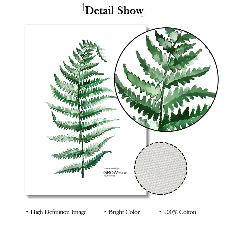 Скандинавские зеленые растения, холст, фотообои, акварельные листья, декоративная живопись для гостиной, домашний декор