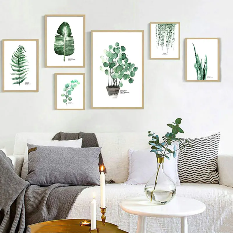 Настенные картины в простом стиле с зелеными растениями, декоративн...
