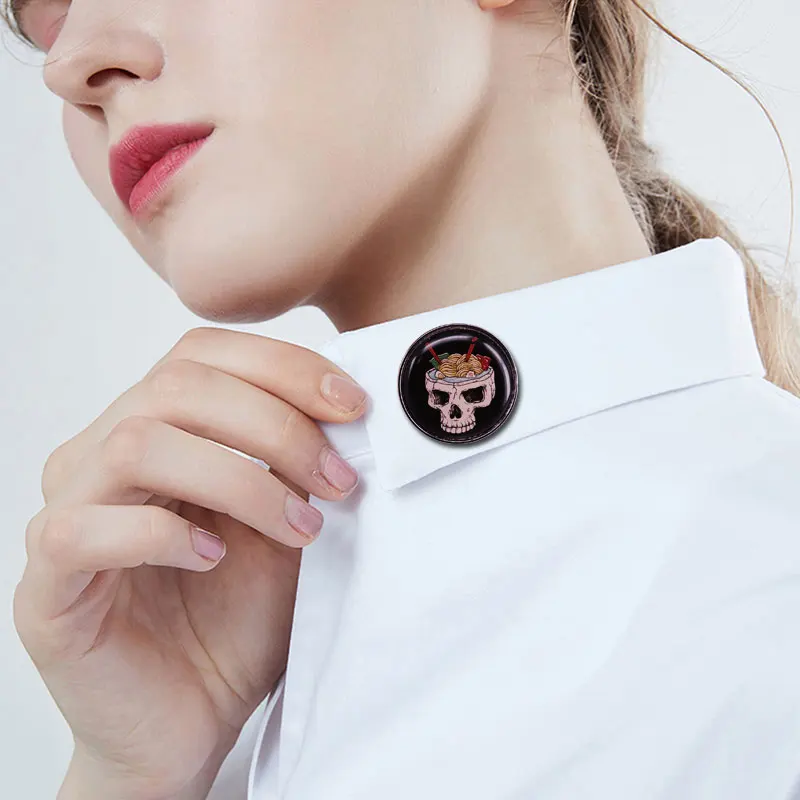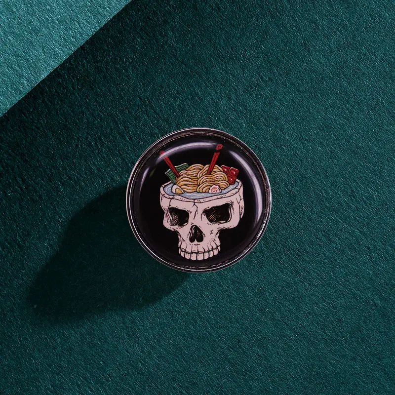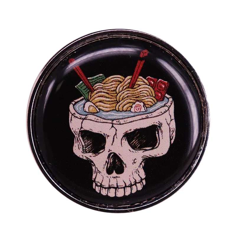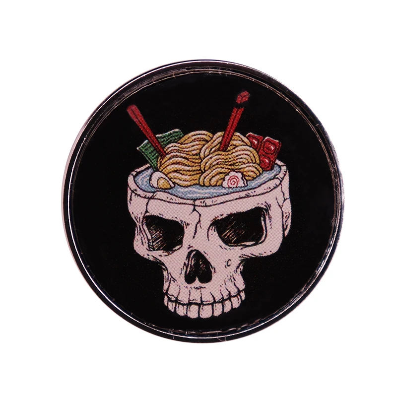 Цвет черный, темно-Ramen Лапша Череп знак Графический лапши череп и мозги чаша штырь отворотом Скелет вечерние ювелирные изделия