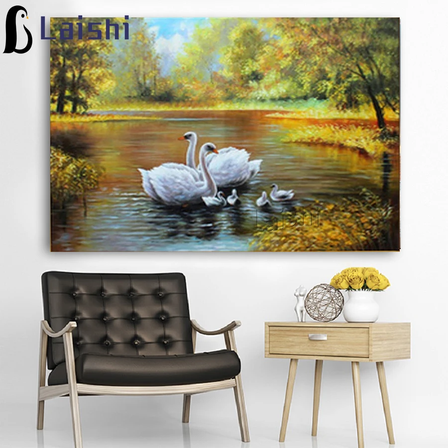5d Diy алмазная живопись природные пейзажи, лебедь для всей семьи полное представление площадь дрель Алмазная вышивка Бриллиантовая мозаика с животным подарки