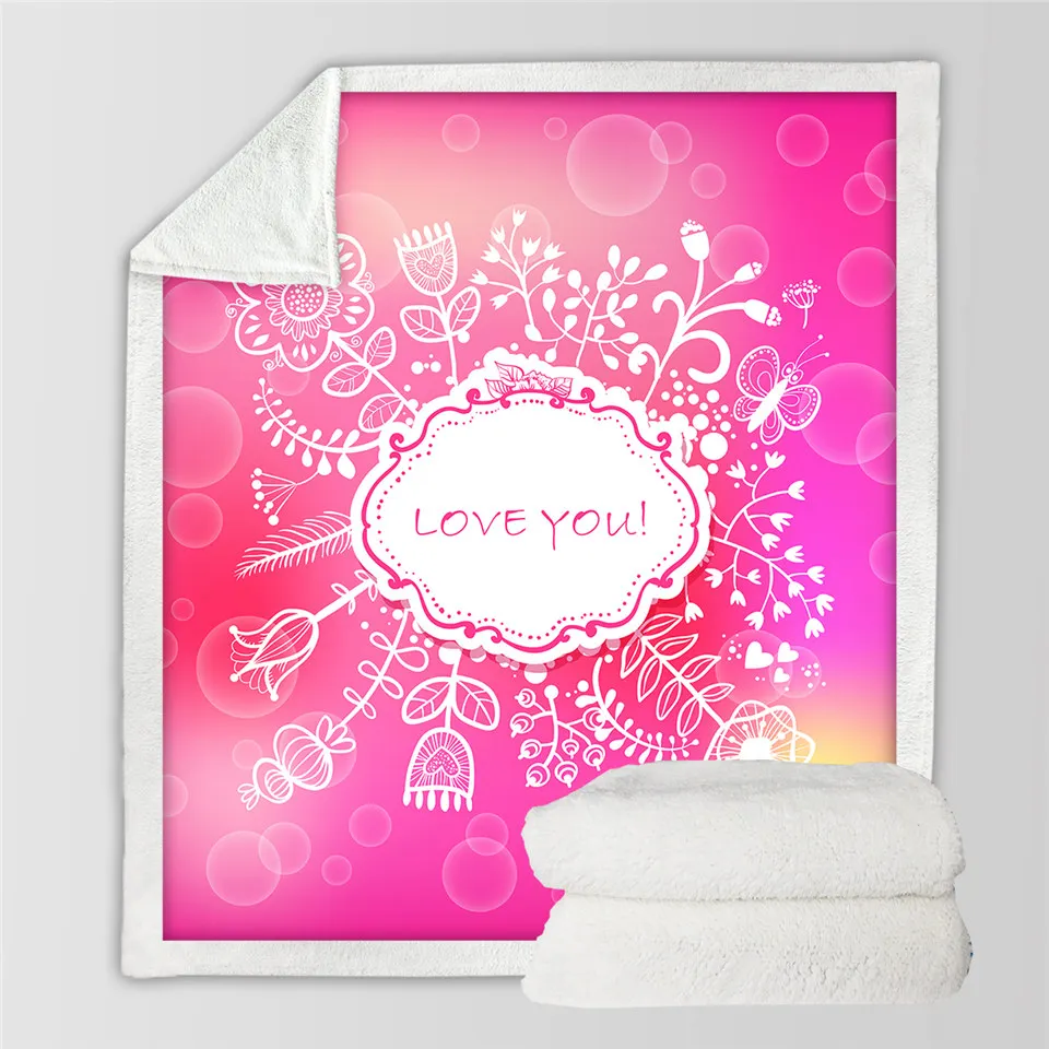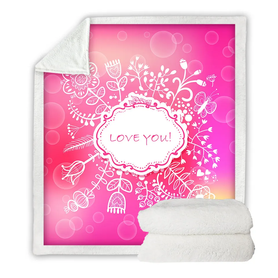 Постельные принадлежности на выход, покрывало с цветочным принтом и шерпой, розовое и желтое покрывало с надписью Love, плюшевое покрывало для дивана, детское тонкое одеяло с цветочным рисунком