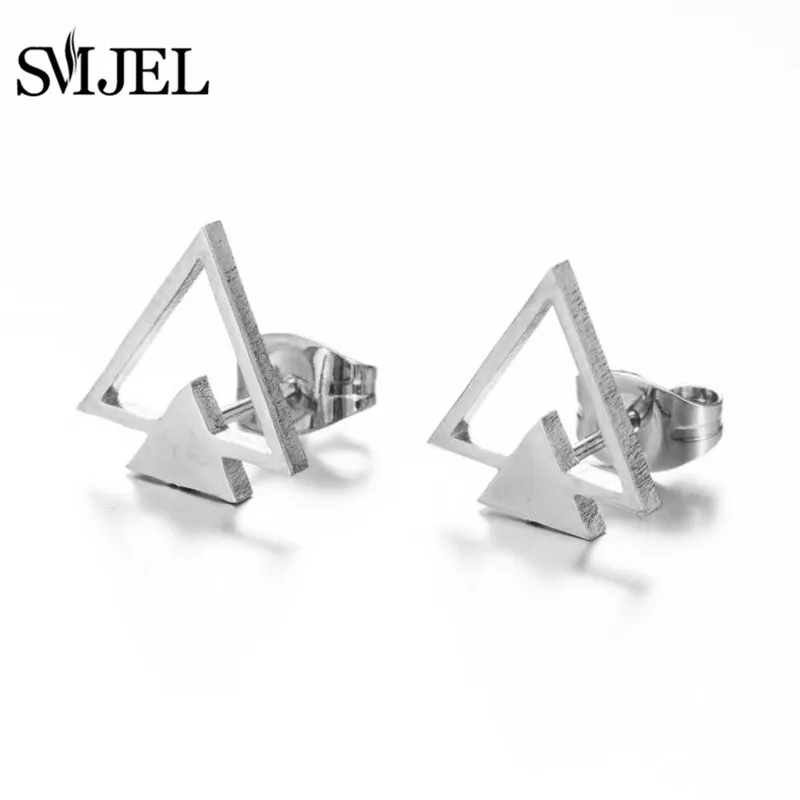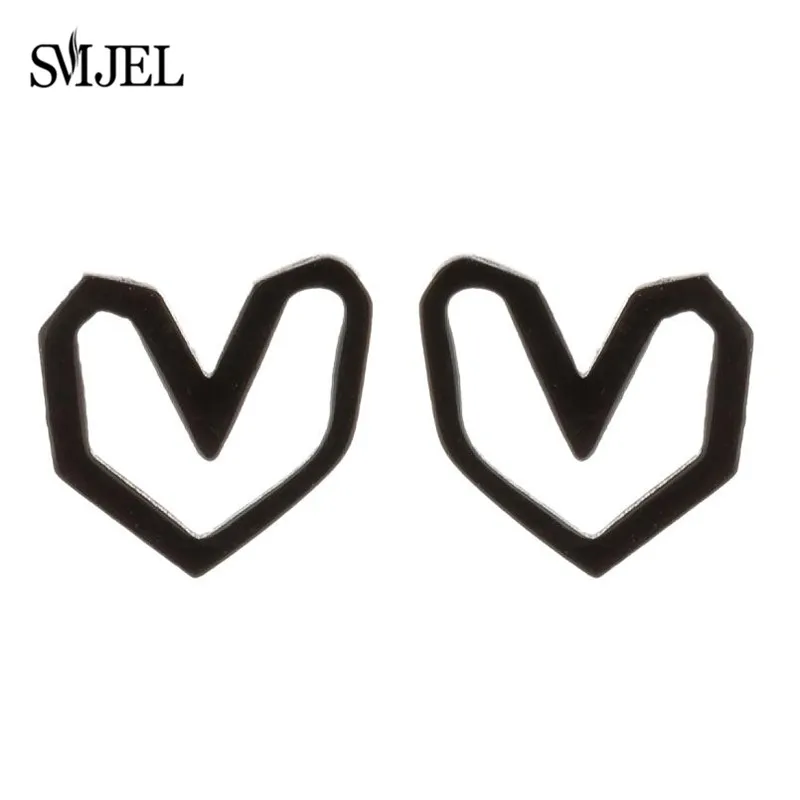 Серьги-гвоздики из нержавеющей стали для мужчин и женщин, геометрические мини-сережки с черными сердечками, луной, глазом, треугольниками в стиле панк, бижутерия, хороший подарок для друга