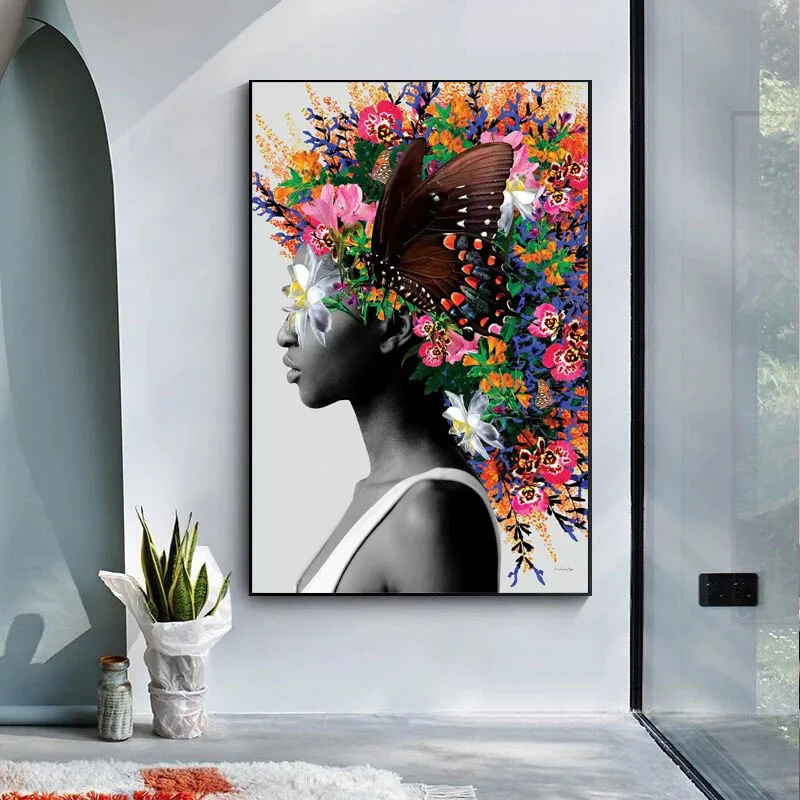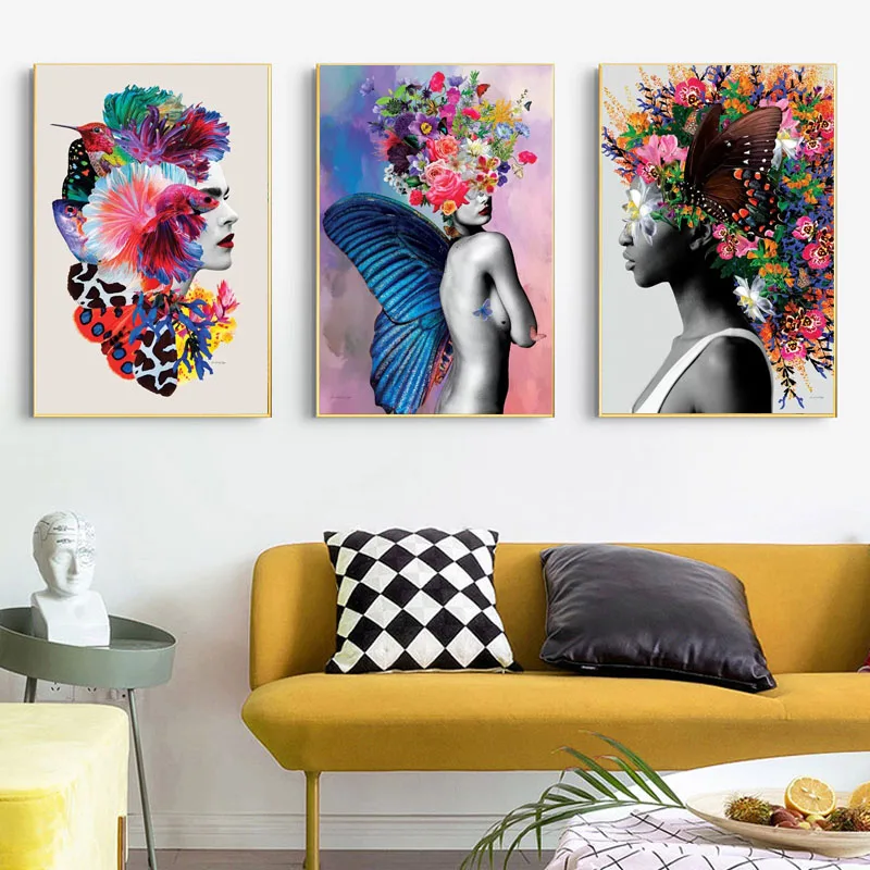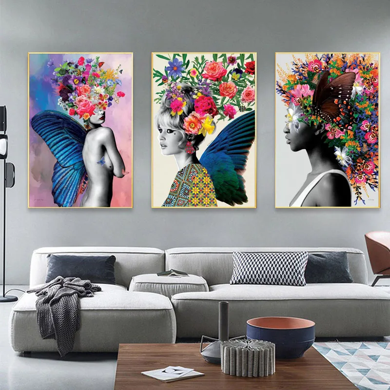 Картина на холсте с абстрактными крыльями бабочки и цветами, настенные картины, плакаты для украшения гостиной, домашний декор
