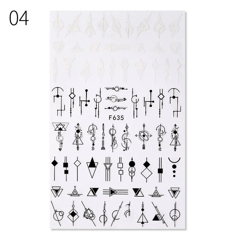 3D Черно-белые наклейки для ногтей геометрические художественные ли...