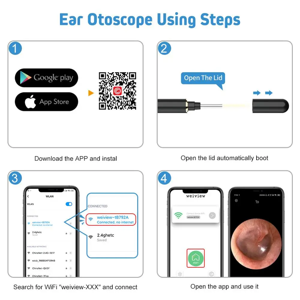 Многофункциональный Otoscope: Otoscope может использоваться для проверки уха, но также и для вашего питомца (собаки, кошки и т. Д.). Это камера обнаружения для глаз, носа, рта, рта, пор и т. д. это необходимый семейный Профессиональный инструмент для здравоохранения.