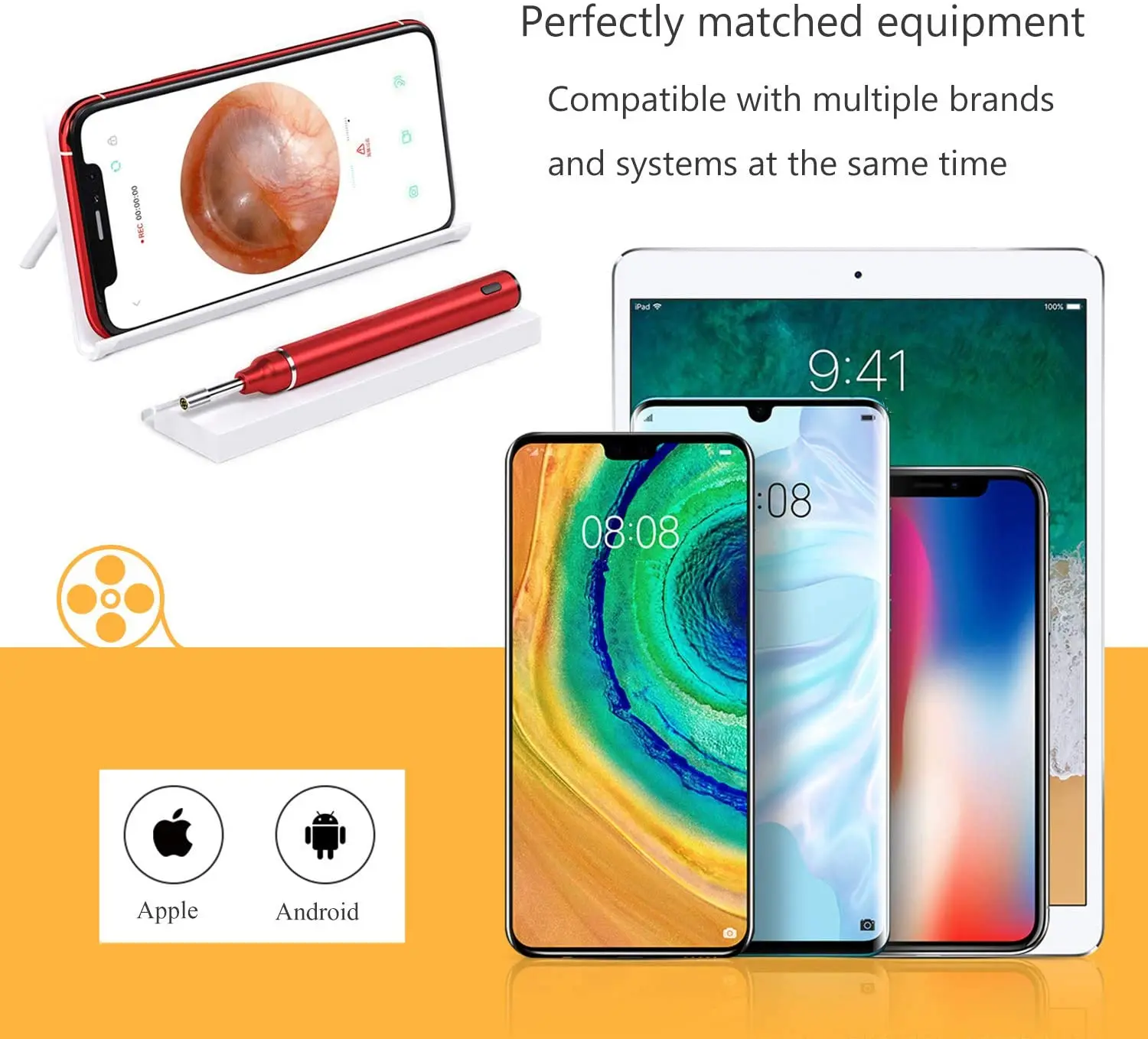 Широкая совместимость, встроенный WIFI подключение: Otoscope поддерживает android 4,2 +, ios 9,0 +. Загрузите приложение или смартфон для подключения телефона к iPad, затем вы сможете увидеть изображение на экране и сделать фотографию или Запись видео.