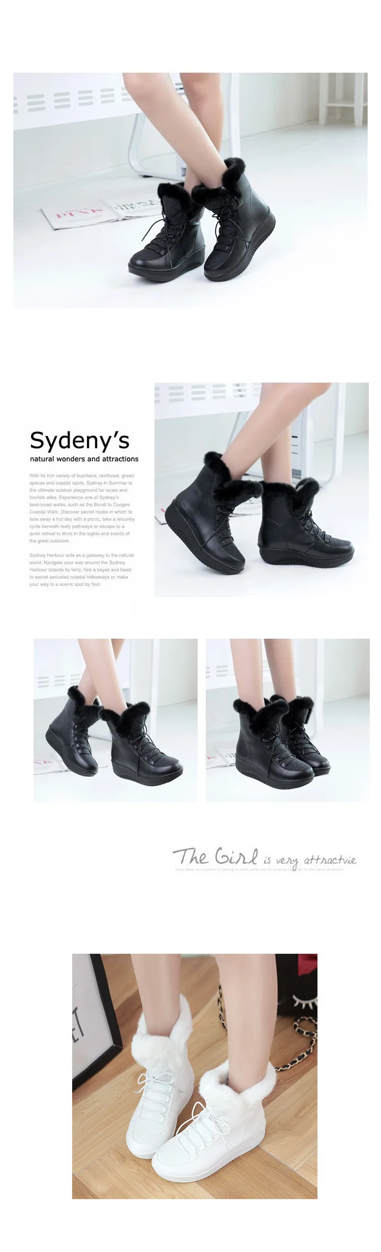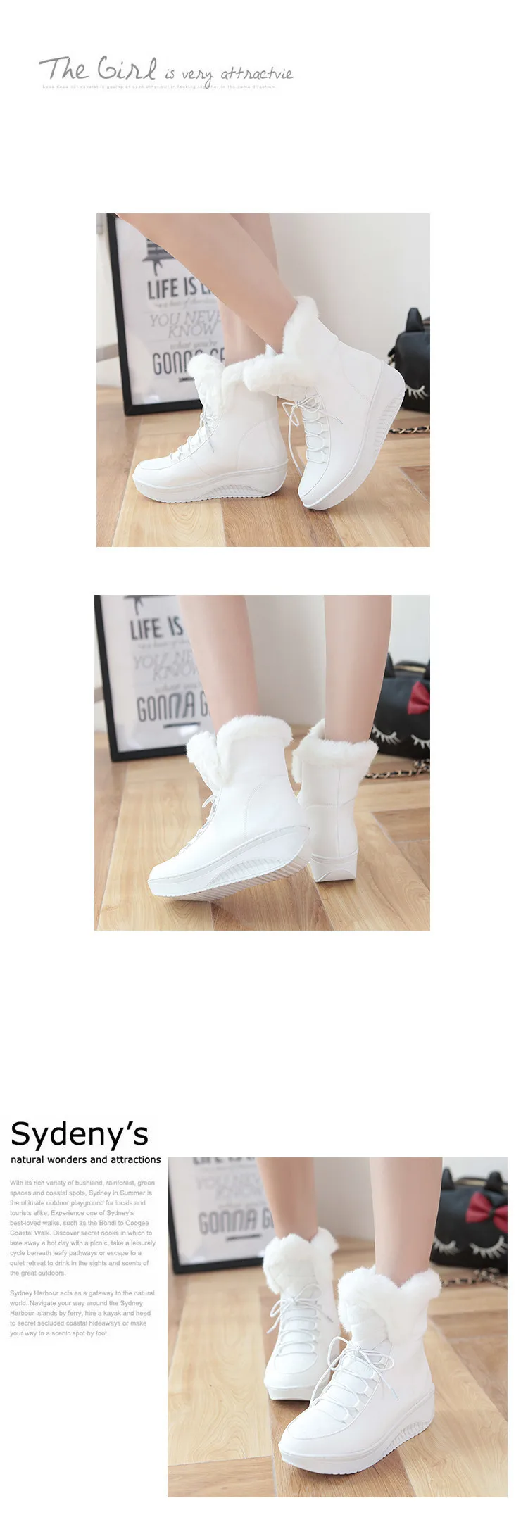 Новые зимние ботинки размера плюс 35-44 женские ботильоны на танкетке со шнуровкой обувь на платформе белого и черного цвета женские теплые зимние ботинки на меху