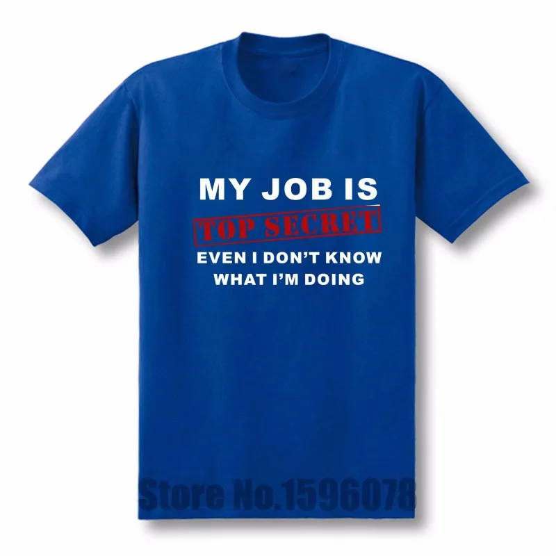 Футболка мужская с забавным рисунком MY work IS TOP SECRET, хлопковая Повседневная рубашка с коротким рукавом, с смешным рисунком, со слоганом смеха