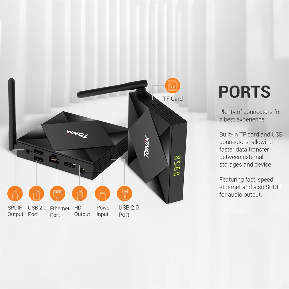 Процессор Allwinner H616 64-разрядный четырехъядерный ARM®Кортекс™Процессор A53GPU G31™MP2 GPU процессорПамять DDR: 2 ГБ/4 ГБФлеш-память eMMC:8 ГБ/32 ГБ (опция: 16 Гб/64 ГБ)Wi-Fi IEEE 802,11 a/b/g/n/ac; 2,4G / 5GBluetooth BT; Поддержка голосового удаленного управленияПластик мыши: черный цветI/O 1 * HDMI 2,1, поддержка HDMI CEC, Dynamic HDR и выход с максимальным разрешением 8K x 4K @ 241 выход стандартного разрешения AV OUT 480i/576i3 * USB 3 * USB 2,01 * ИК-приемник для подключения пульта ДУ1 * Интерфейс Ethernet RJ45; Поддержка 10/100M1 TF-карта с поддержкой 4 ГБ/8 ГБ/16 ГБ/32 ГБ/64 ГБПитание постоянного тока 5 В/2 А;Программное обеспечениеОС Android 10,0Видеодвижок (AVE) с выделенными аппаратными декодерами и кодерамиПоддержка мультивидеодекодера до 4x1080P @ 60fpsПоддержка нескольких «безопасных» сеансов декодирования видео и одновременного декодирования и кодированияДекодирование видео/изображения-VP9 профиль-2 до 8K x 4K @ 24 fps-H.265 HEVC MP-10@L5.1 до 8K x 4K @ 24 fps-AVS2-P2 профиль до 8K x 4K @ 24 fps-H.264 AVC HP@L5.1 до 4K x 2K @ 30fps-MPEG-4 ASP @ L5 до 1080P @ 60fps (ISO-14496)-WMV/VC-1 SP/MP/AP до 1080P при 60 кадрах в секунду-AVS-P16(AVS +) /AVS-P2 JiZhun Profile до 1080P @ 60fps-MPEG-2 MP/HL до 1080P @ 60fps (ISO-13818)-MPEG-1 MP/HL до 1080P @ 60fps (ISO-11172)-RealVideo 8/9/10 до 1080P @ 60fps-Поддержка нескольких языков и нескольких форматов-Декодирование неограниченного разрешения пикселей MJPEG и JPEG (ISO/IEC-10918)-Поддерживает миниатюру JPEG, масштабирование, вращение и эффекты перехода-Поддержка *.mkv,*.wmv,*.mpg, *.mpeg, *.dat, *.avi, *.mov, *.iso, *.mp4, *.rm и *.jpg_.webp форматы файловАудио поддерживает MP3, AAC, WMA, RM, FLAC, Ogg и программируется с 7,1/5,1 пониженным смешиваниемМаломощный VADВстроенный последовательный цифровой аудио SPDIF/IEC958 вход/выход и вход/выход PCM3 встроенных порта TDM/PCM/I2S с режимом TDM/PCM до 384 кГц x 32 бит x 16 каналов или 96 кГц x 32 бита x 32 канала и режимы I2S до 384 кГц x 32 бита x 16 каналовЦифровой микрофон PDM вход с программируемым CIC, LPF и HPF, поддержка до 8 DMICsВстроенный стерео аудио ЦАППоддерживает параллельный двойной стереоканальный выход с комбинацией аналоговых + PCM или I2S + PCMИзображение HD JPEG, BMP, GIF, PNG, TIFЯзык Английский Французский Немецкий Испанский итальянский и т. Д. Многосторонний языкПрименениеОнлайн-просмотр всех видеосайтов, поддержка Netflix,Hulu, ⑥ Ster, Youtube и т. д.Приложения бесплатно загружаются из android market, amazon app store и т. Д.Воспроизведение средних локальных носителей, Поддержка HDD, U Disck ,TF-карт.Онлайн-поддержка звонков по SKYPE, MSN , facebook ,twitter ,QQ и т. Д.Другие поддерживают электронную почту, офисный костюм и т. д.Поддержка функции DLNAПоддержка беспроводной мыши/клавиатуры 2,4GРазмер упаковкиКол-во в упаковкеКомплектация: (ДхШхВ)Единица упаковки (брутто)Кол-во в экспортной коробкеЭкспортная коробка (WxHxL)Экспортная коробка (брутто)Аксессуары:1. Кабель HDMI * 12. ИК-пульт * 13. Руководство пользователя * 14. Посылка * 15. Адаптер питания * 1