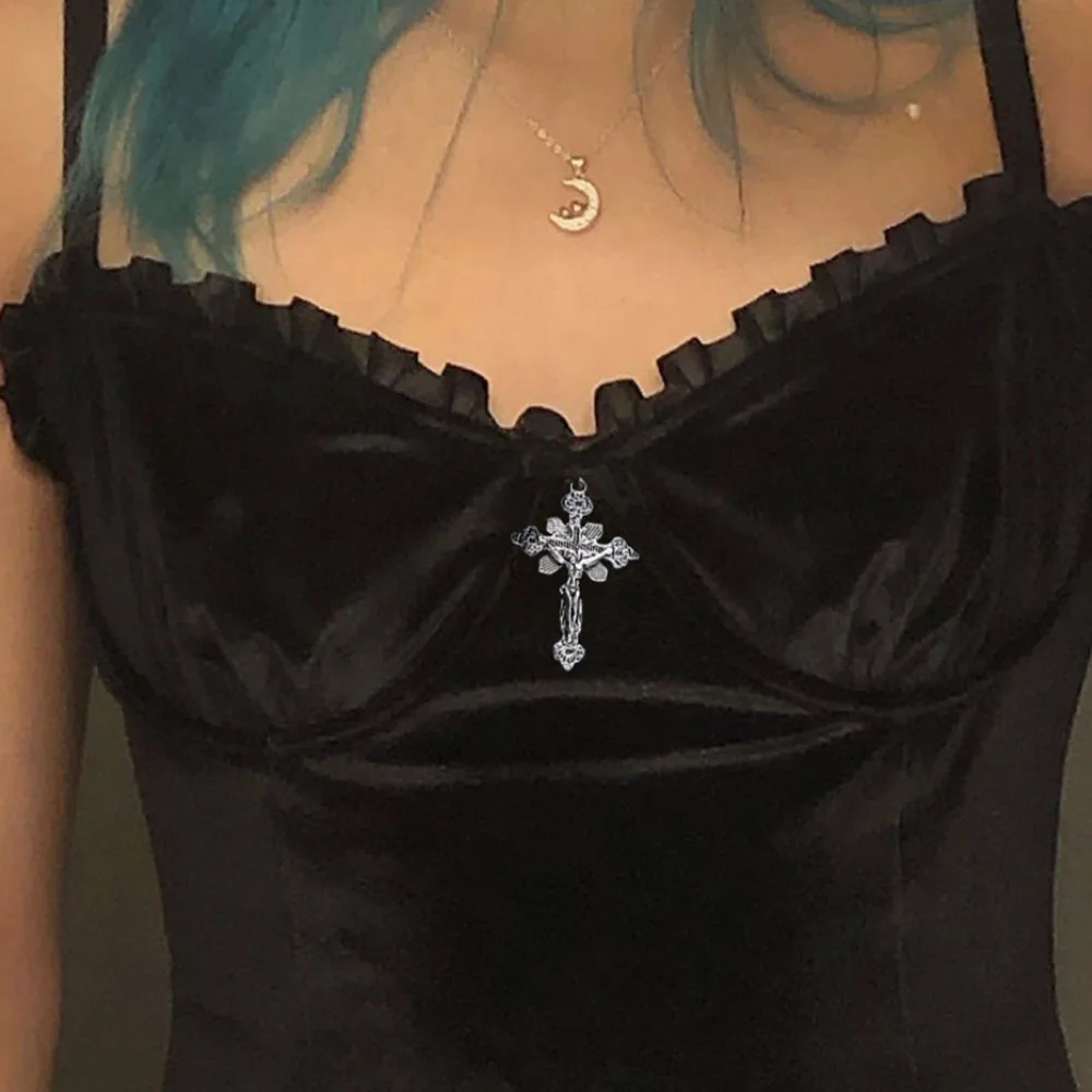 Заказывала размер L - по размерной сетке должно было сесть хорошо, ну и село. Груди у меня нет, так что осталось немного "лишней" ткани в этом месте, но ваще не заметно. за что спасибо. Но больше первого размера. я думаю, туда не войдет. Ткань приятная, нитки не торчат, к телу не липнет, правда на него все липнет. что логично. Крест присобачен клеем, шут его знает, отвалится или нет. Минус одна звездочка, потому что цвет пришел не тот, уж очень хотелось фиолетовый, а оно черное(( Пришло меньше, чем за две недели, вообще шик!