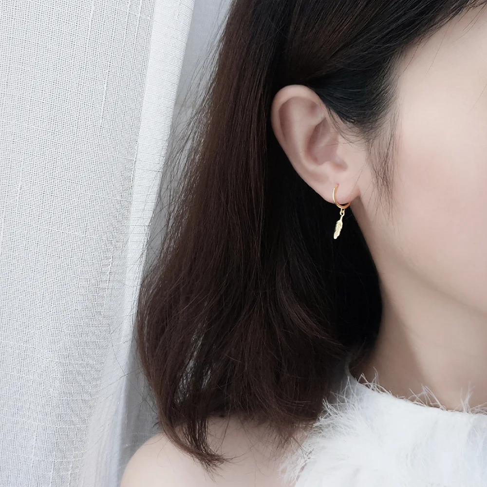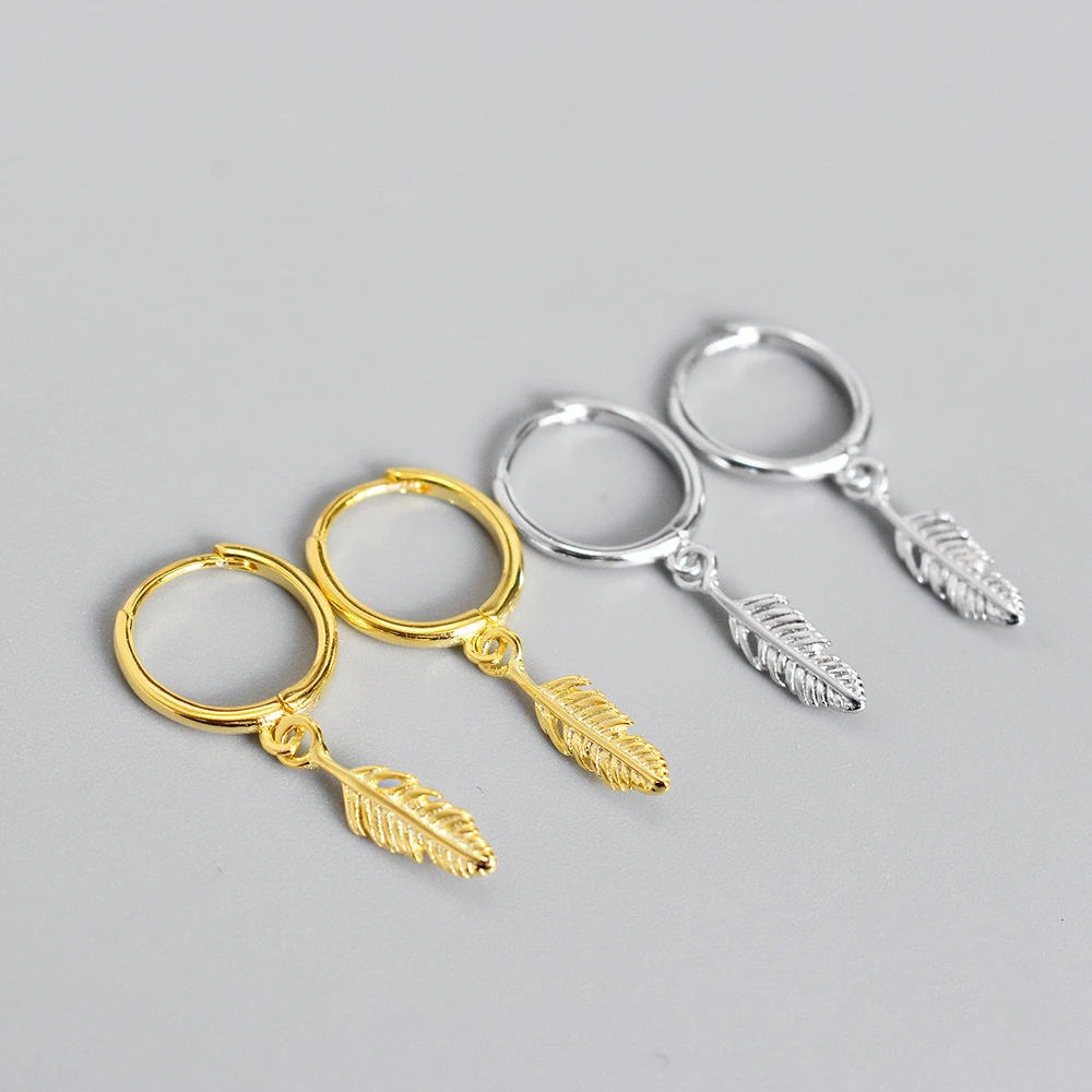LKO настоящее серебро 925 пробы 100% милые серьги-кольца с перьями для женщин ювелирные изделия роскошные милые висячие серьги девушка серьги-гвоздики подарок