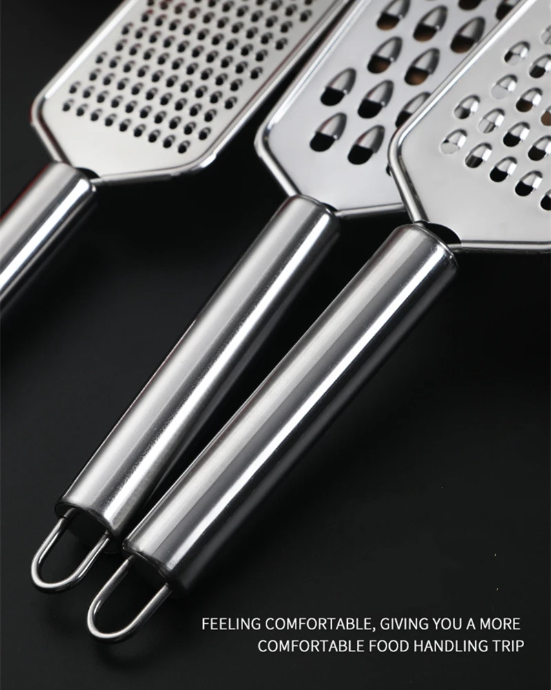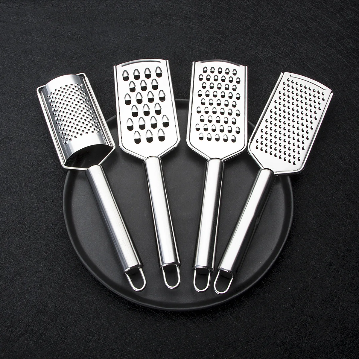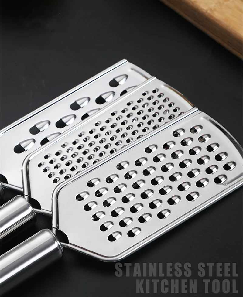 3. Терка из нержавеющей стали является основным инструментом на кухне. Идеально подходит для нарезки и терки картофеля, лука, моркови, кабачков, огурцов, капусты, сыра, шоколада и т. д.