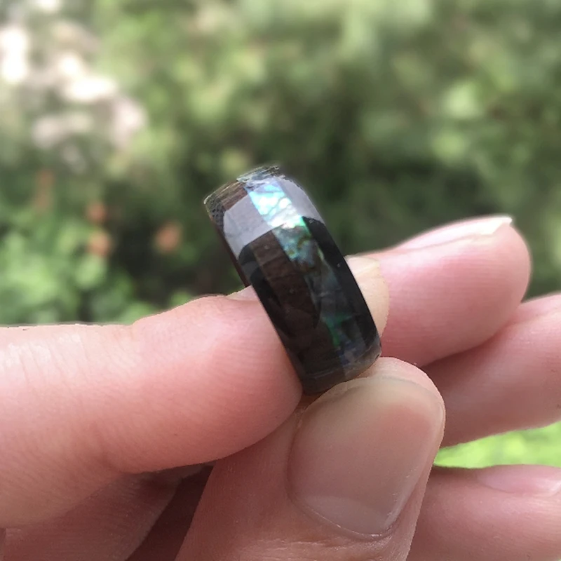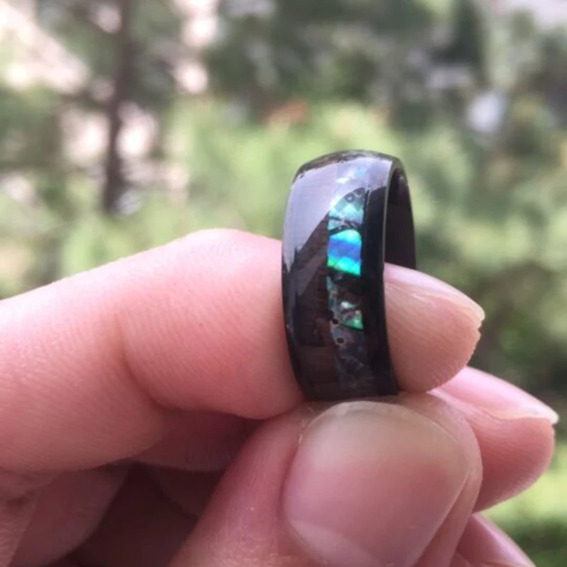 Мужские кольца из нержавеющей стали с инкрустацией в виде древесины и морской ракушки, 8 мм, кольцо со стрелкой из метеорита, винтажное мужское свадебное кольцо, ювелирные изделия в подарок