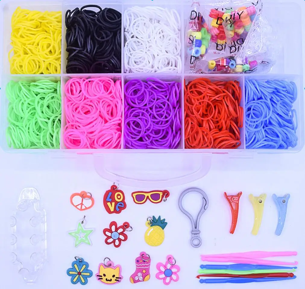 2000 резиновые ленты ткацкий станок DIY плетеная коробка эластичный браслет ручная работа креативный комплект подарок для девочек детские игрушки для детей искусственные подростковые