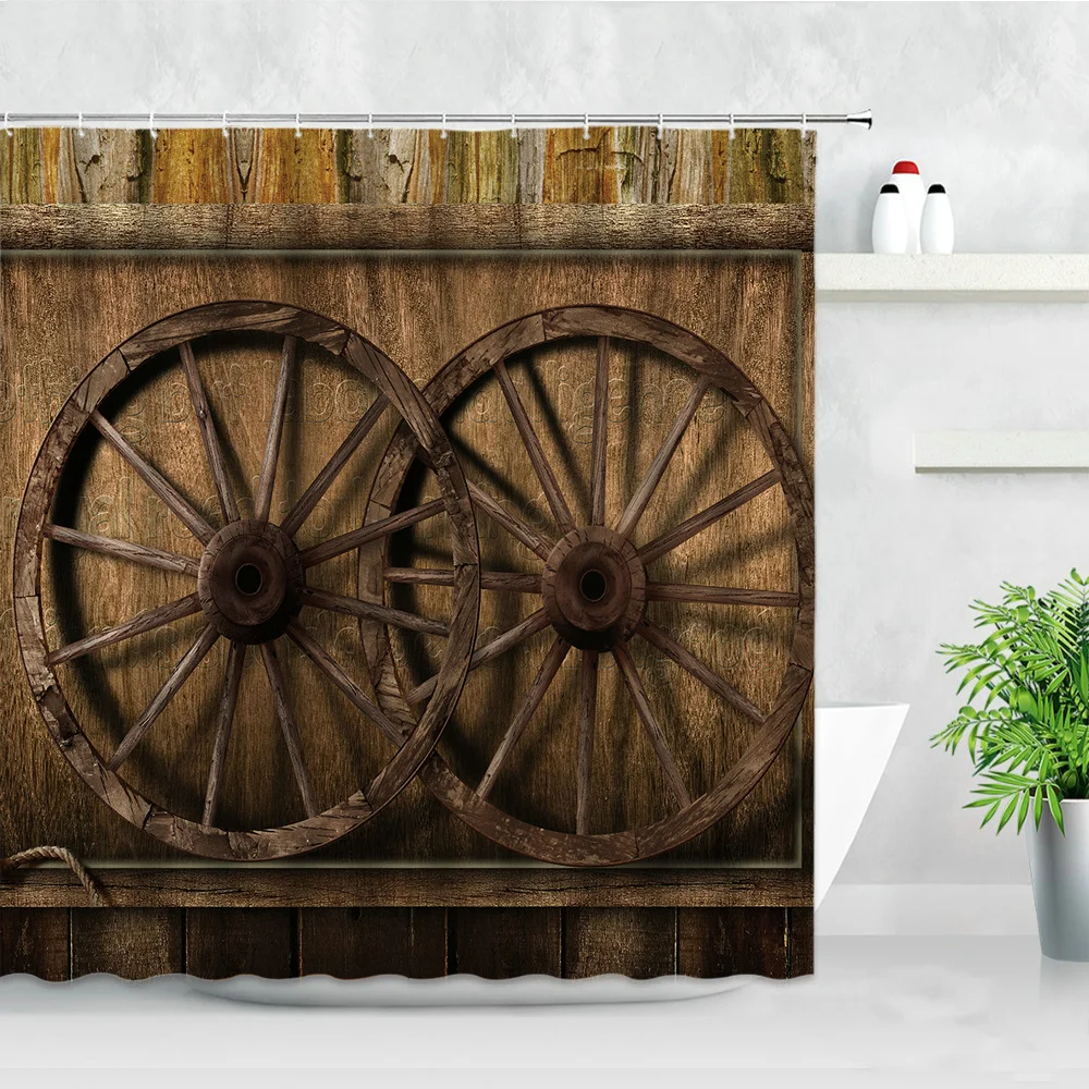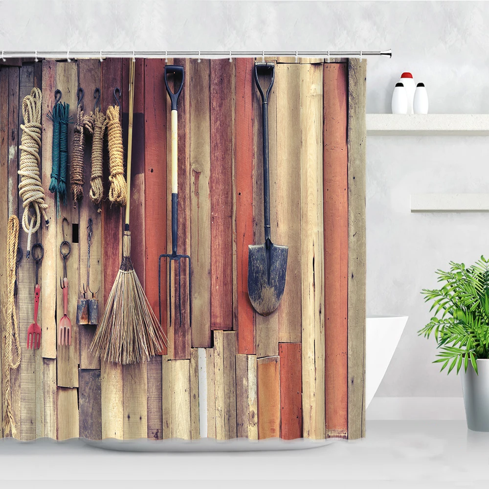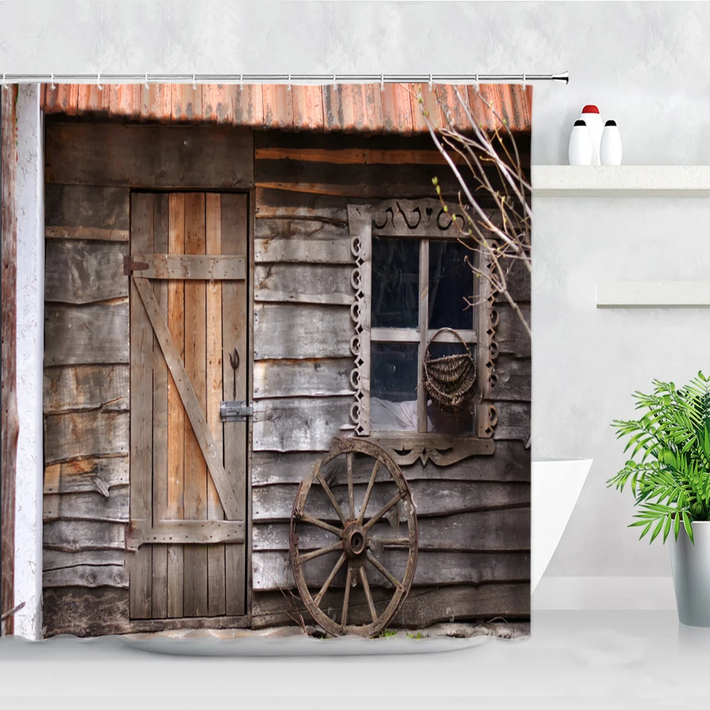 Винтажные занавески для душа с деревянными дверями, в стиле ретро, ...