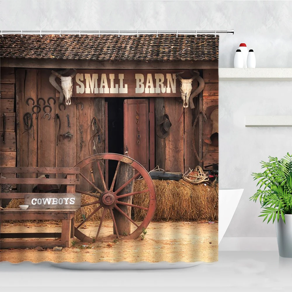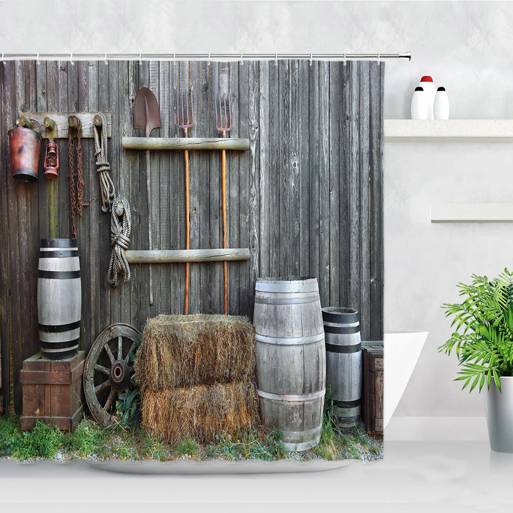 Занавеска для душа в деревенском стиле на дверь сарая, серая и бела...