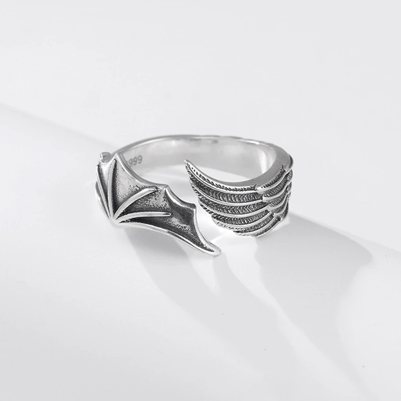 Открытое кольцо с крыльями в стиле ретро панк, модное индивидуальное Открытое кольцо унисекс с дьяволом, ангелом и демоном, многофункциональный подарок, оптовая продажа